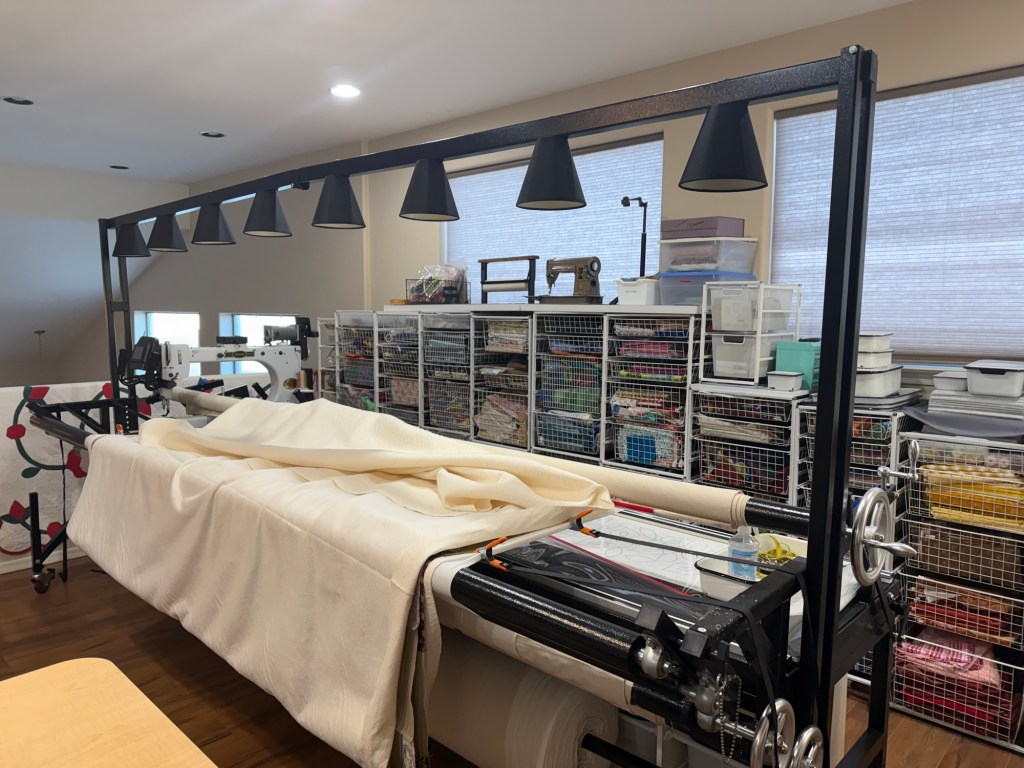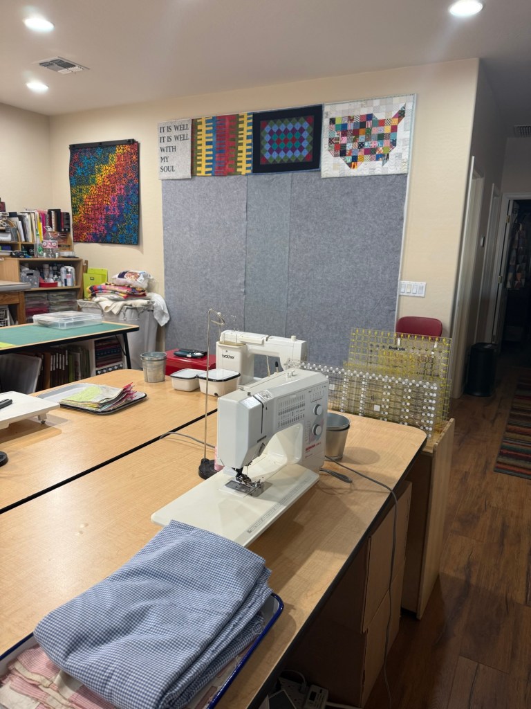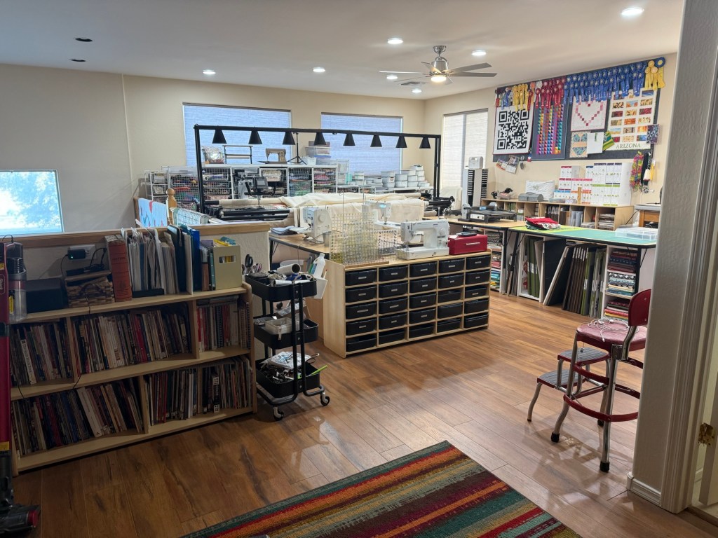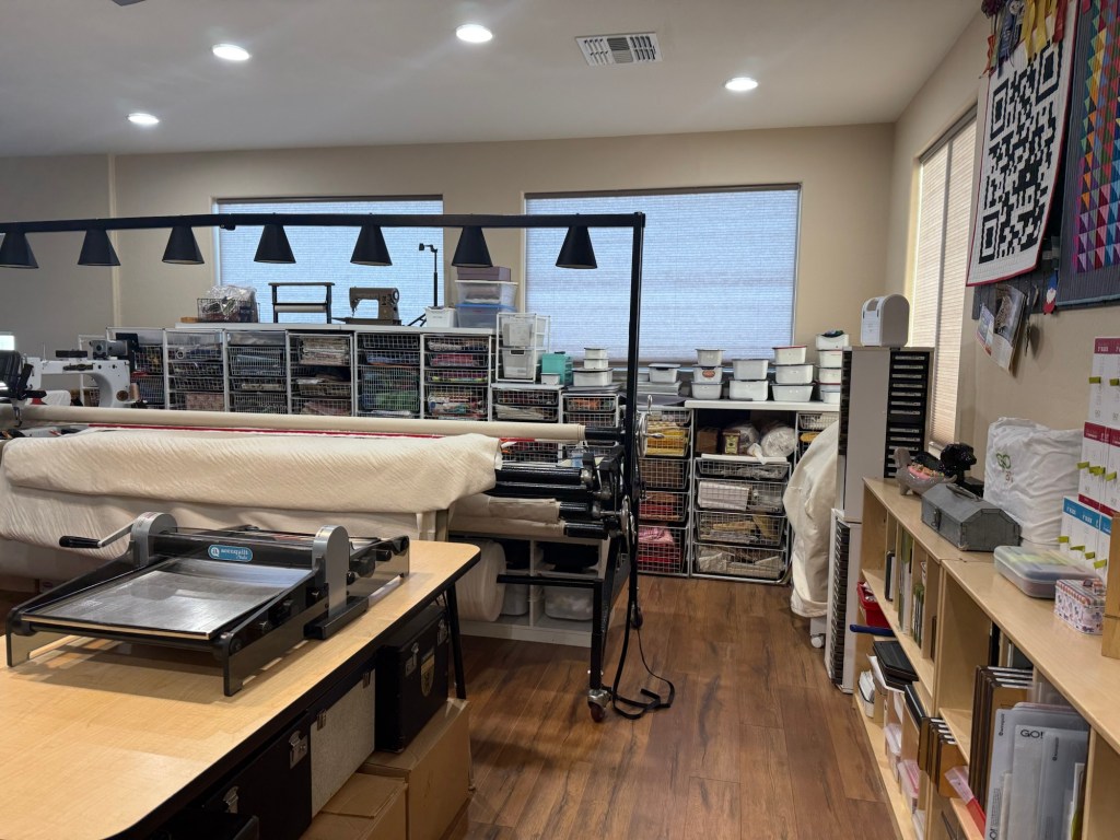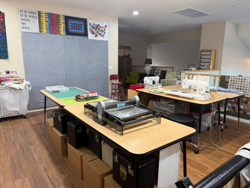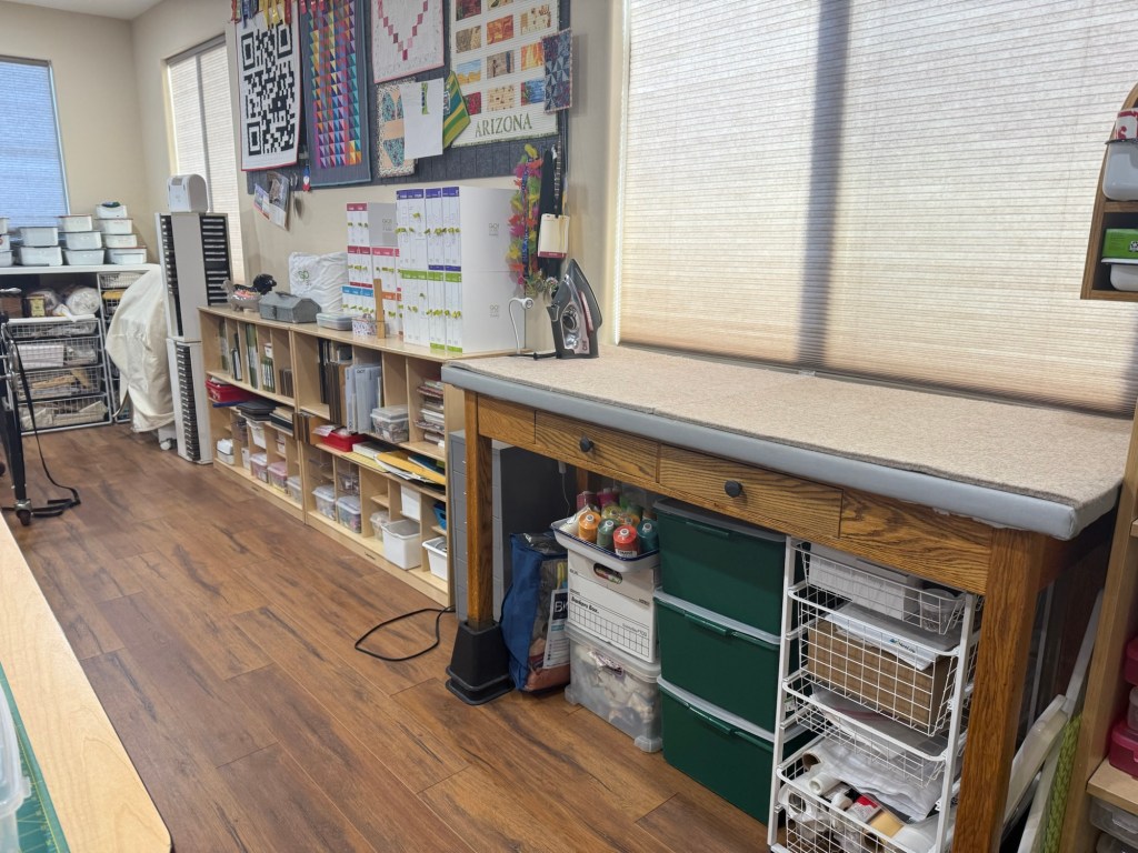 You have more space there than we have in our RV that we LIVE in. No wonder we are crowded, with both of us loving to make quilts, and other hobbies as well!