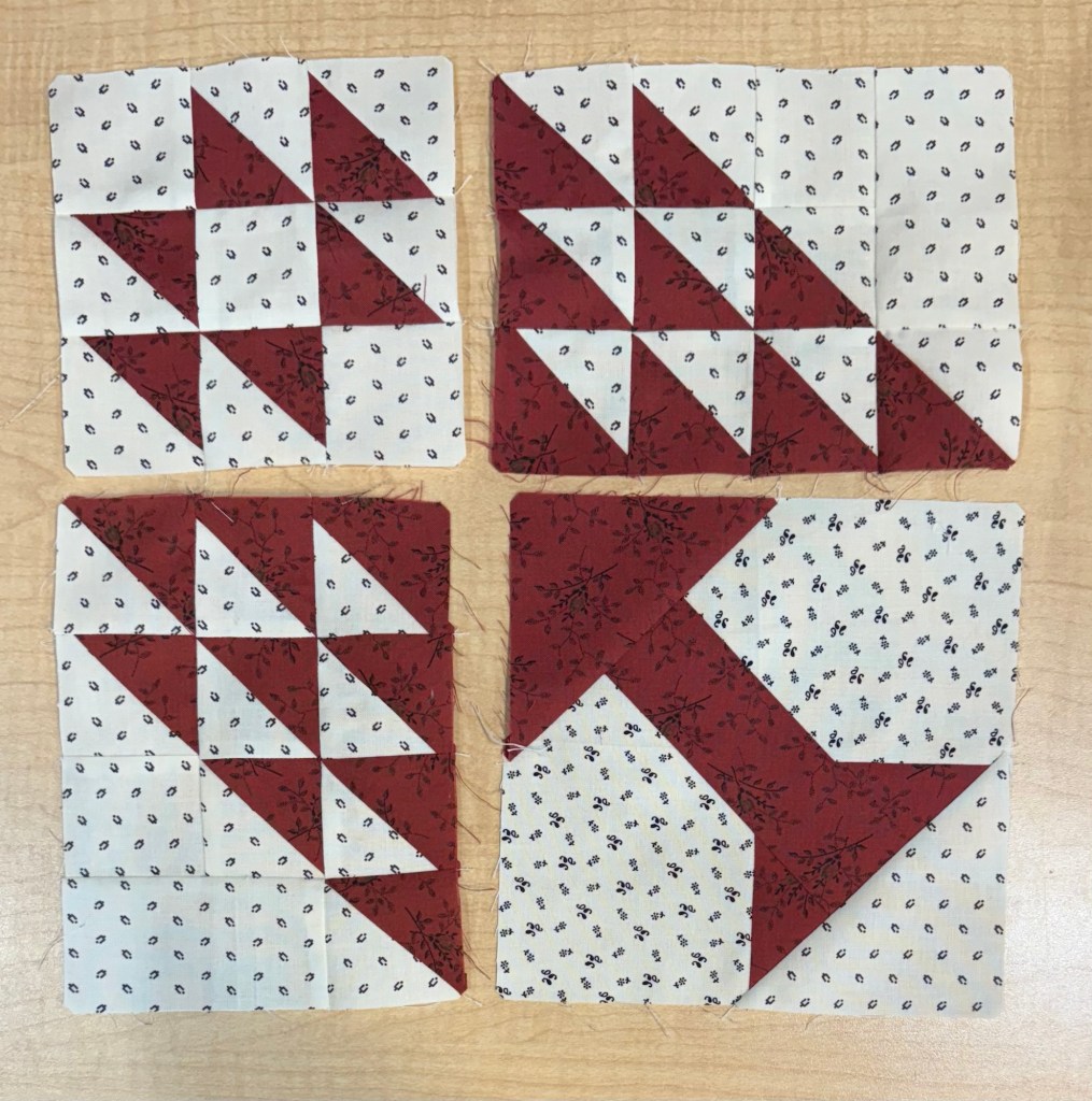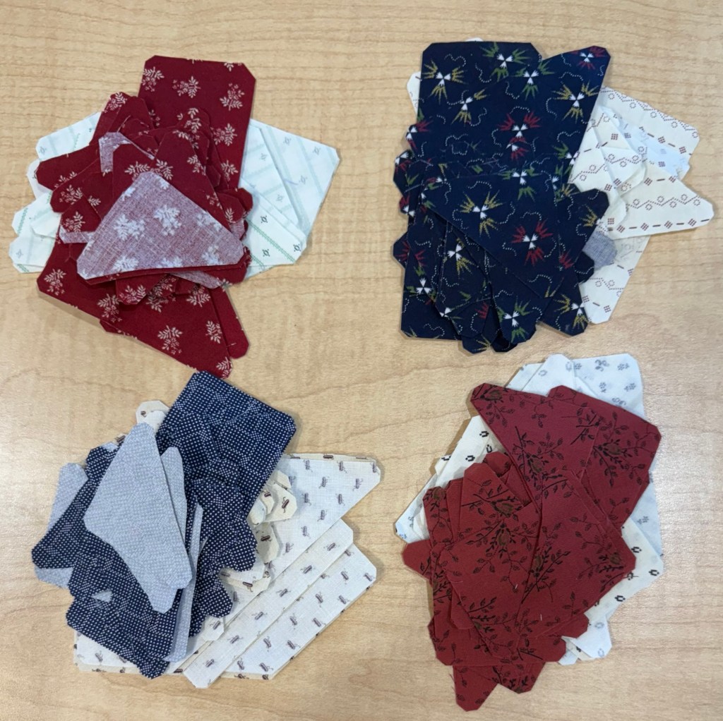 I finally started working on my blocks. I cut out four to work on. I would like to make four a month, but I may only make one. 😂