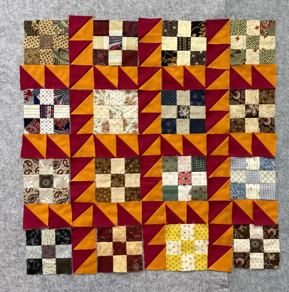 Then I had a really crazy idea, I can make a small quilt and save the leftover 9 patches for something else! Duh! I think I have enough to make a layout like this.