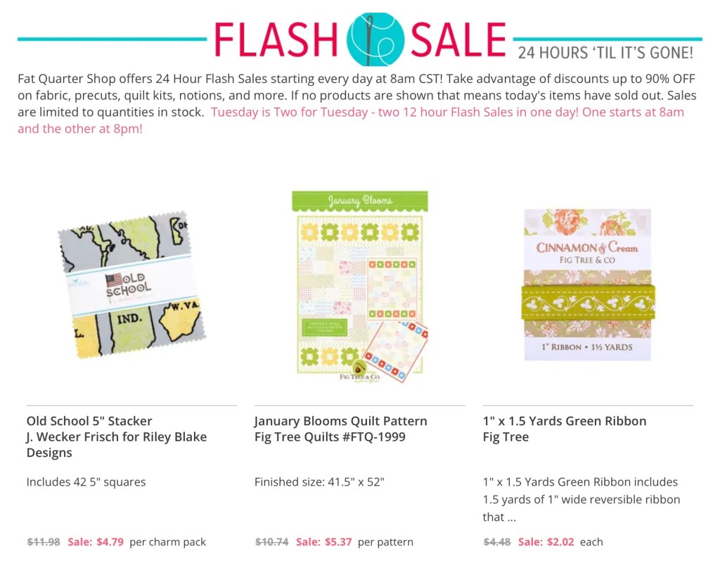 Fat Quarter Shop has FlashSales every day! Today’s deals look very promising.