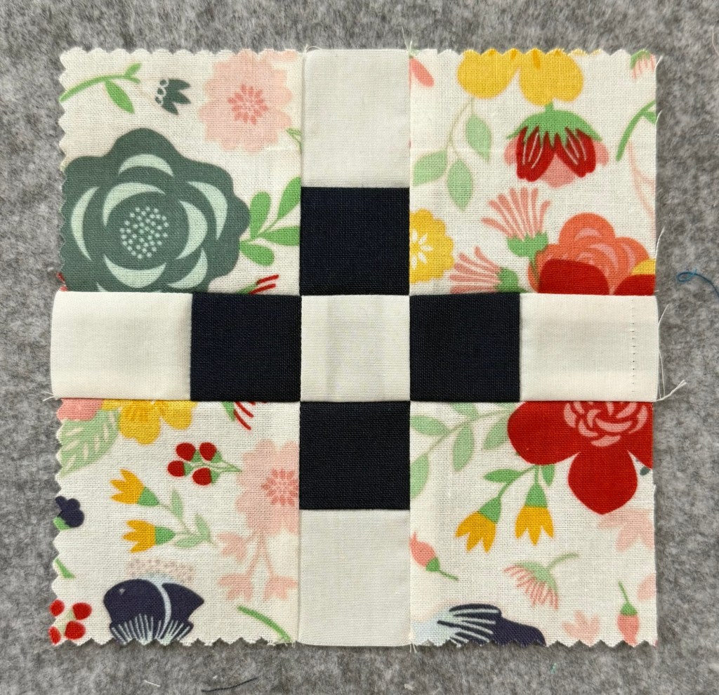 I cut the charms into quarters and also cut 1 1/2ā strips of white and navy blue.