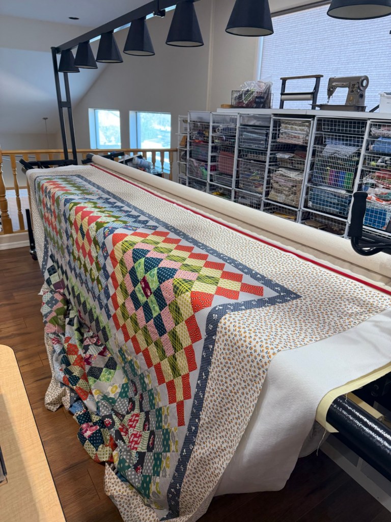 Looking at your picture and seeing your quilt loaded, the line from Romancing the Stone, “Look at those snappers” popped into my head, lol.