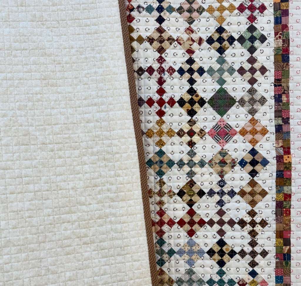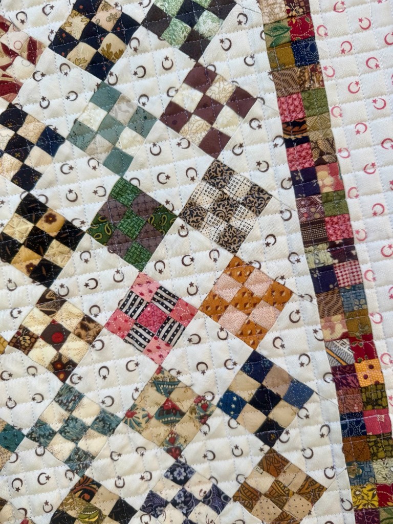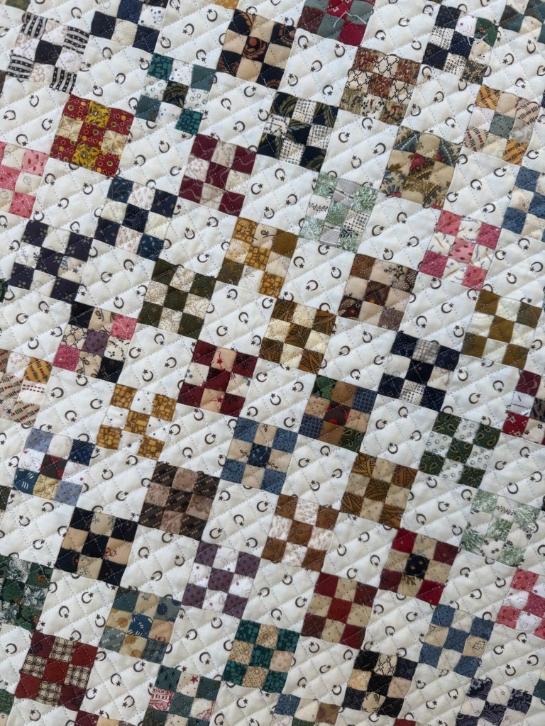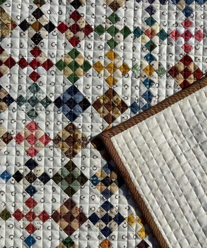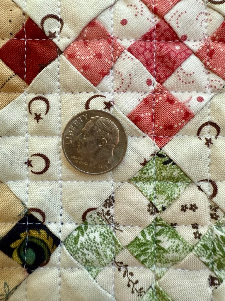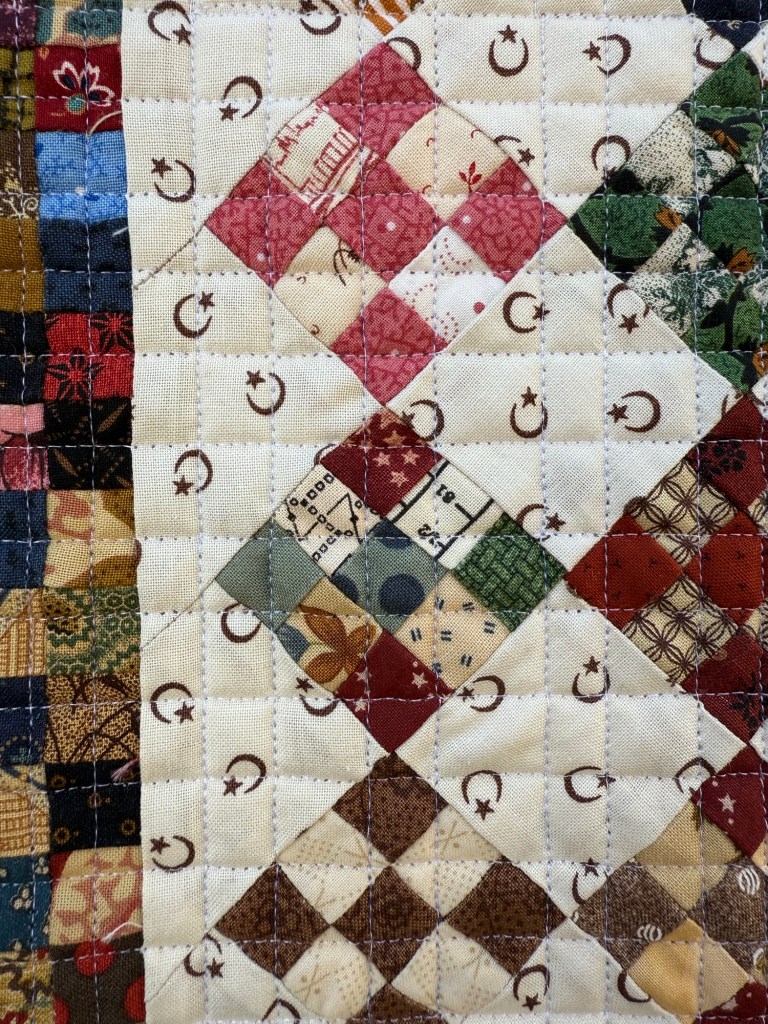 This is the smallest piecing I’ve ever done. And none of it was done with strip piecing. Every square was cut and stitched individually.