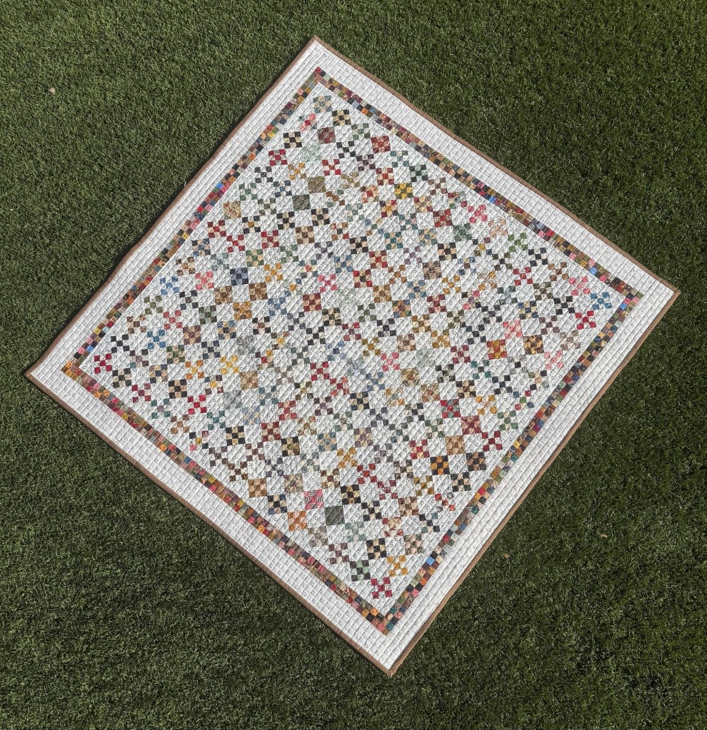It was started in a quilt along by Taryn , @reproquiltlover on Instagram. It contains 2,838 pieces. Each tiny square finishes at one half inch.