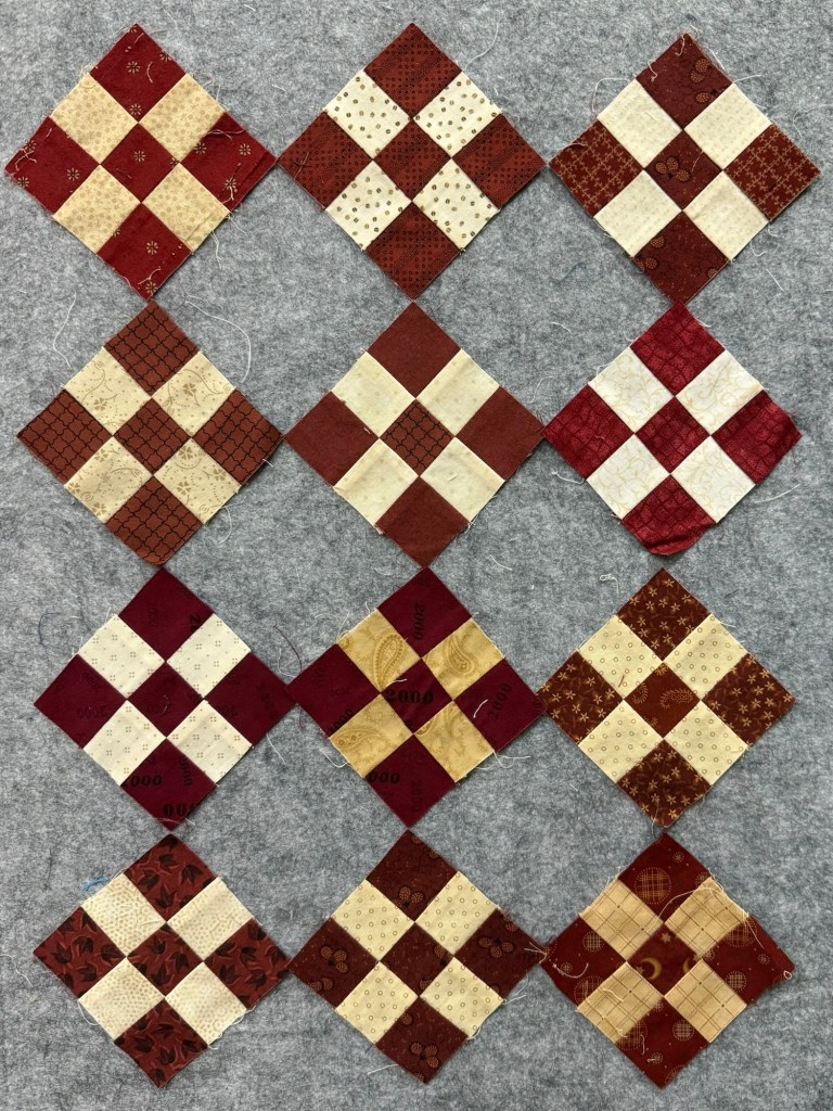 I think these were originally from my dear neighbor and were leftover from a throw quilt made a while back.