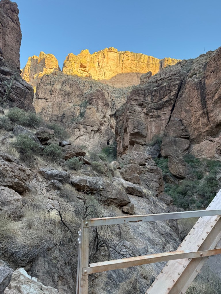 Beautiful…I especially like the picture with the sun gilding the peaks golden. Love the color of your Jeep, too 😉