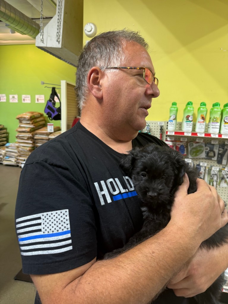 We stopped at our local family owned pet supply store. They often have puppies sourced locally. This sweet little girl is now 10 weeks old. Her momma is full miniature poodle, and we have no idea who or what her daddy is! This store took the puppies to find homes for them.