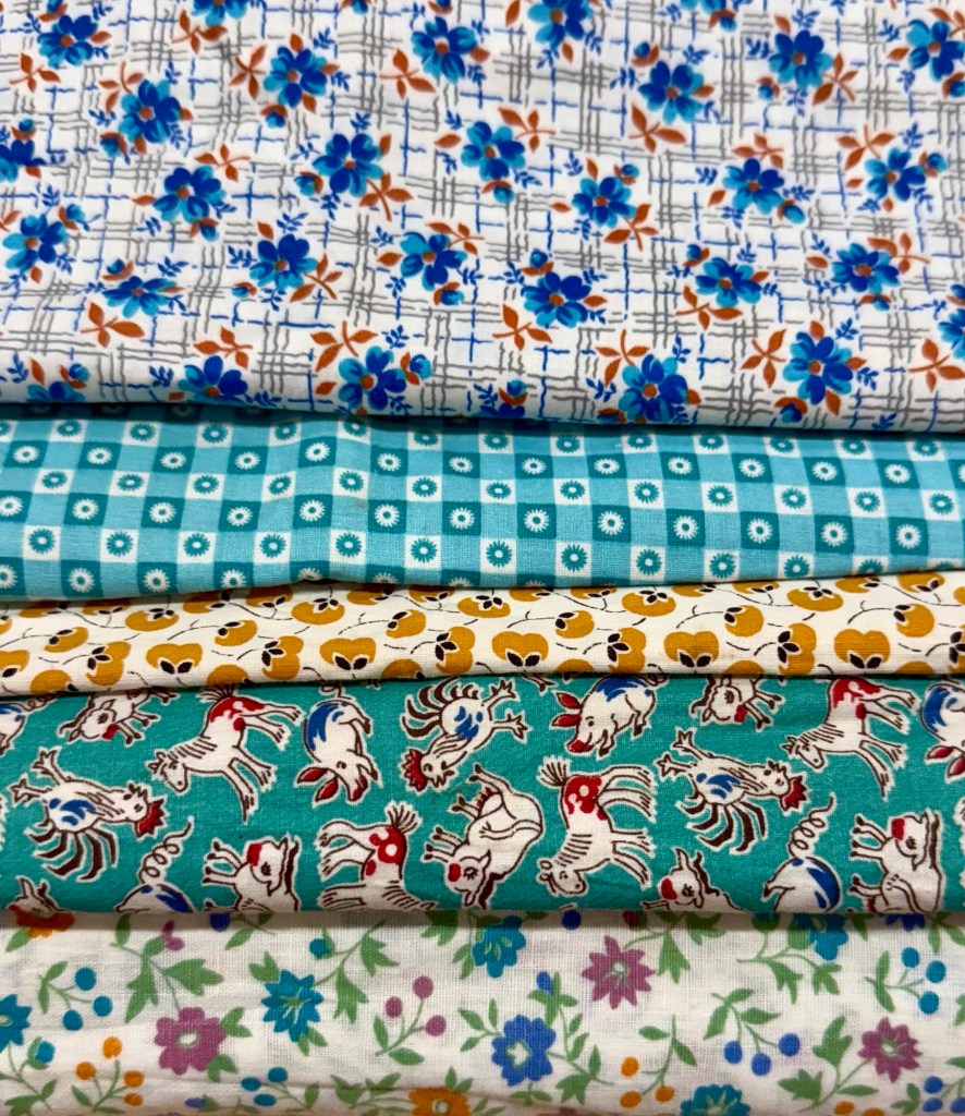 I picked up these vintage fabrics at a yard sale last week. I lov3 them!