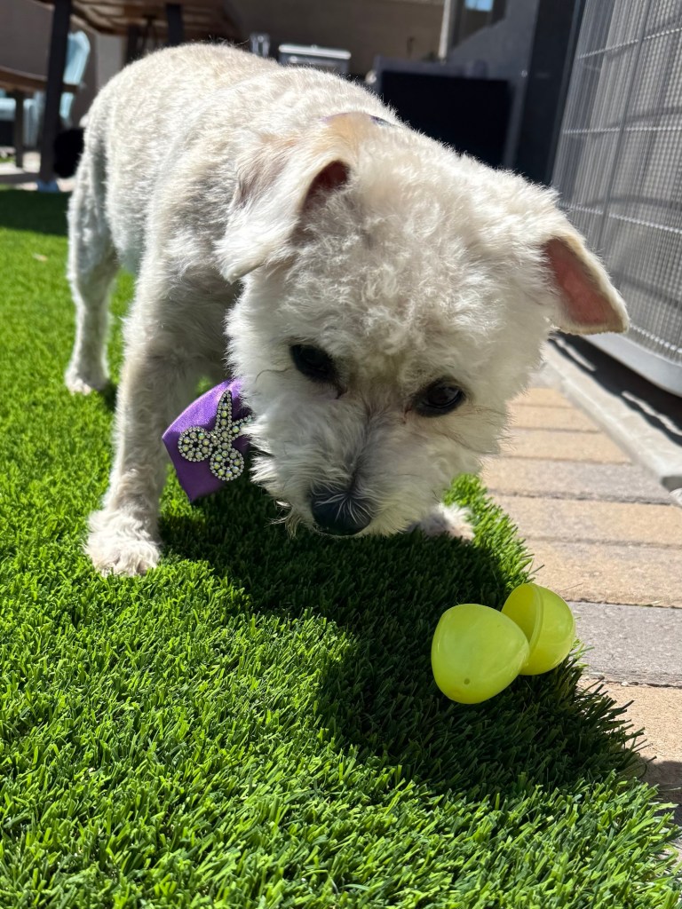 It didn’t take Gracie long to figure out how to open the eggs to get to the treats inside.