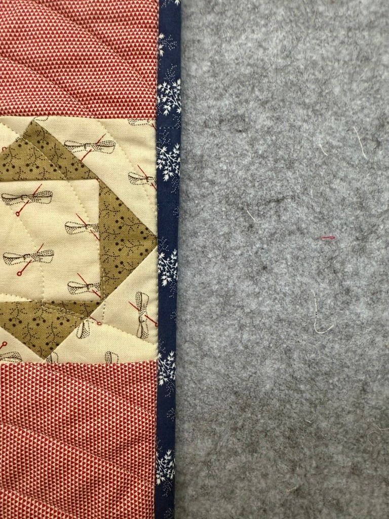 Still working on machine binding. My hands just don’t like hand finishing anymore. I watched this video from Jo’s Country Junction before I started. I’ve done this before with mixed results. Using a smaller seam allowance when stitching th3 binding down on th3 top helped.