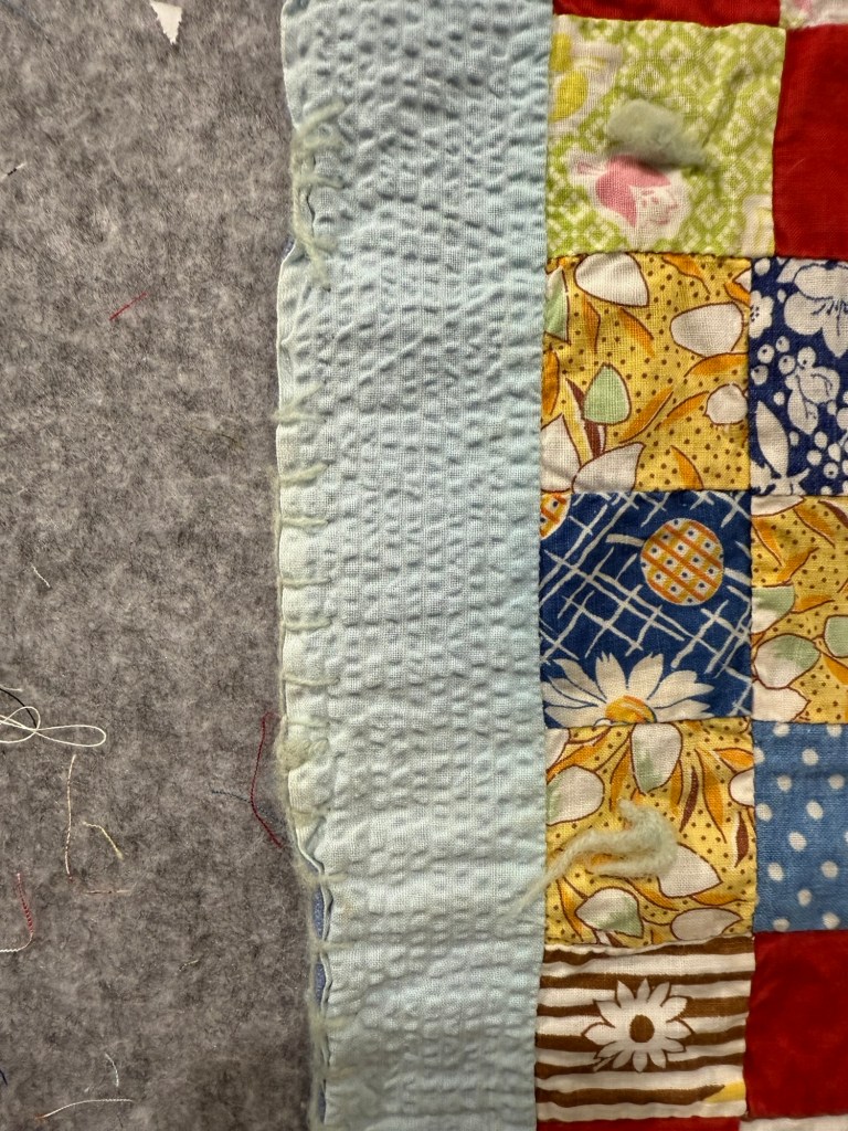 The border fabric is interesting. Is this seersucker? The edges were finished with a blanket stitch.