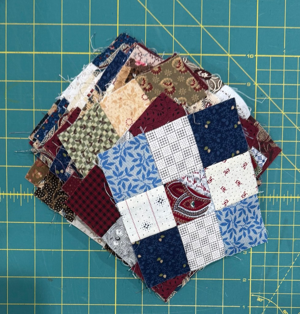 Since I didn’t use all my 9 patches in this quilt, I decided to find a way to use the rest.