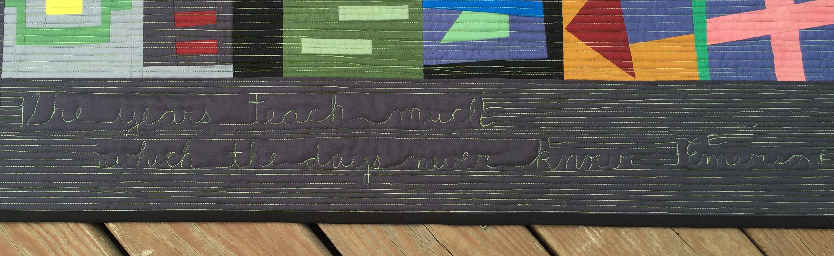 I quilted one of my favorite quotes from Ralph Waldo Emerson in the border: “The years teach much which the days never know.”