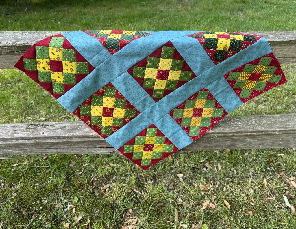 Here is a reminder of my inspiration quilt. I could do narrower borders, but it wouldn’t be the same. So I’ll wait until we get home.