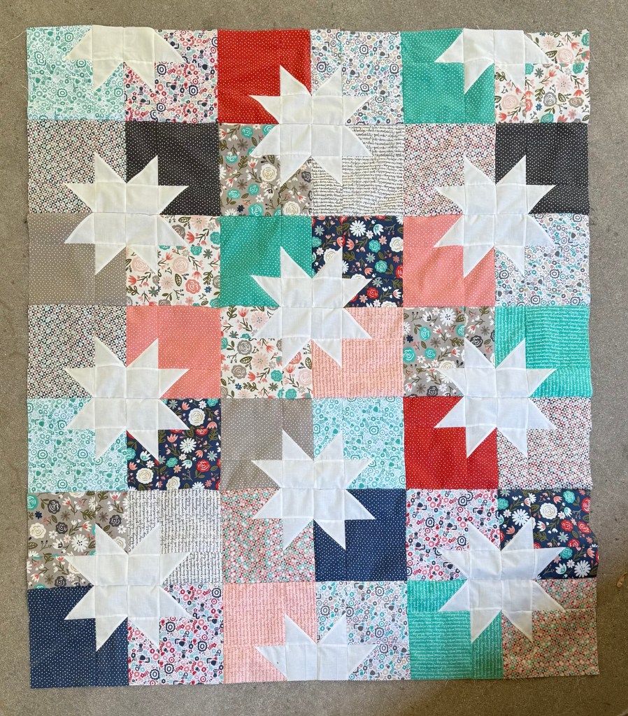 Your helpers really allowed you to be productive this month even in the RV. I’m still admiring your first quilt and the placement of the blue and red HST’s which gives the impression of rows and columns of color. Really draws your eye around.