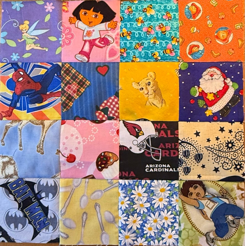 I’ve had these pieces leftover from I Spy quilts for a long time. I decided to bring them with me this summer.