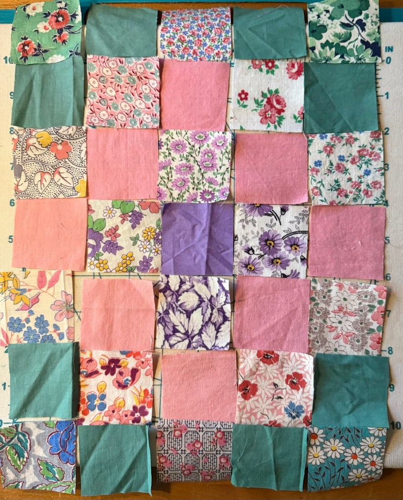I decided I needed a very small project that I could actually finish. So I got out these two bins of vintage fabrics. I really love my AccuQuilt dies and cutters for this!