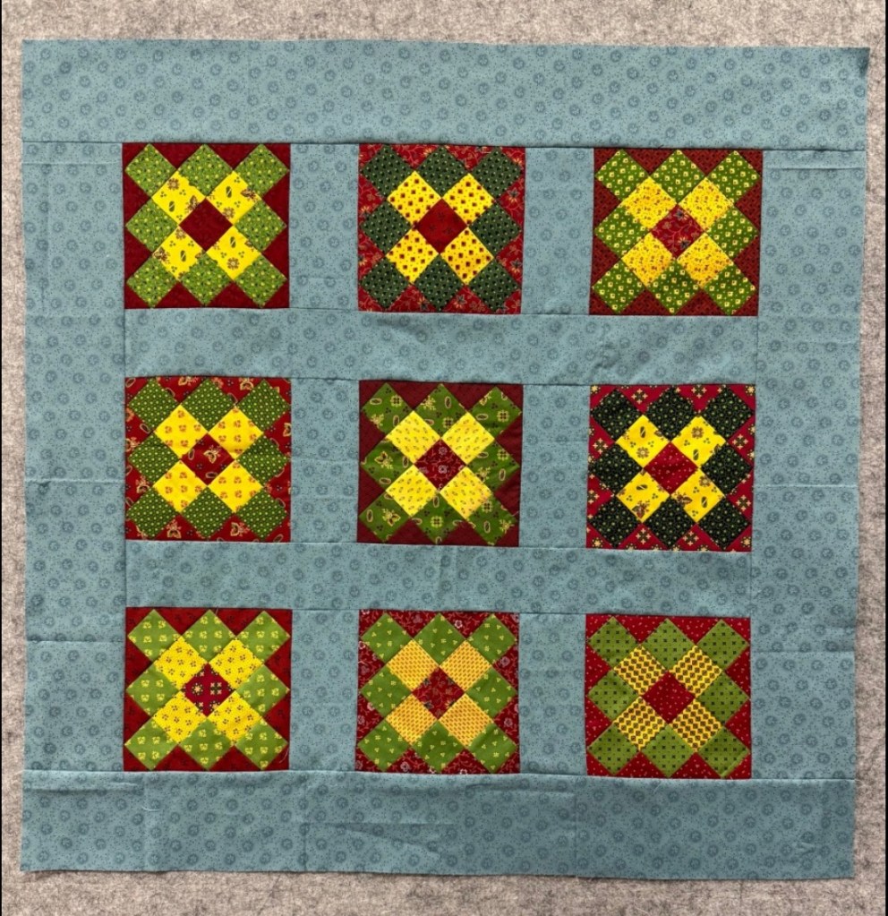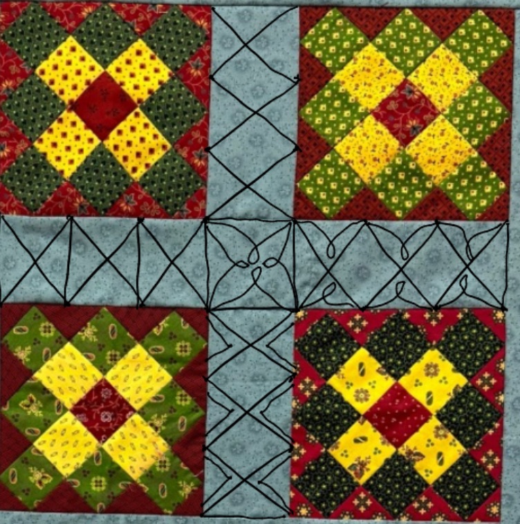 Katy, This looks like a good candidate for Baptist Fans. The colors already draw enough attention to the blocks. I’d keep the quilting simple.