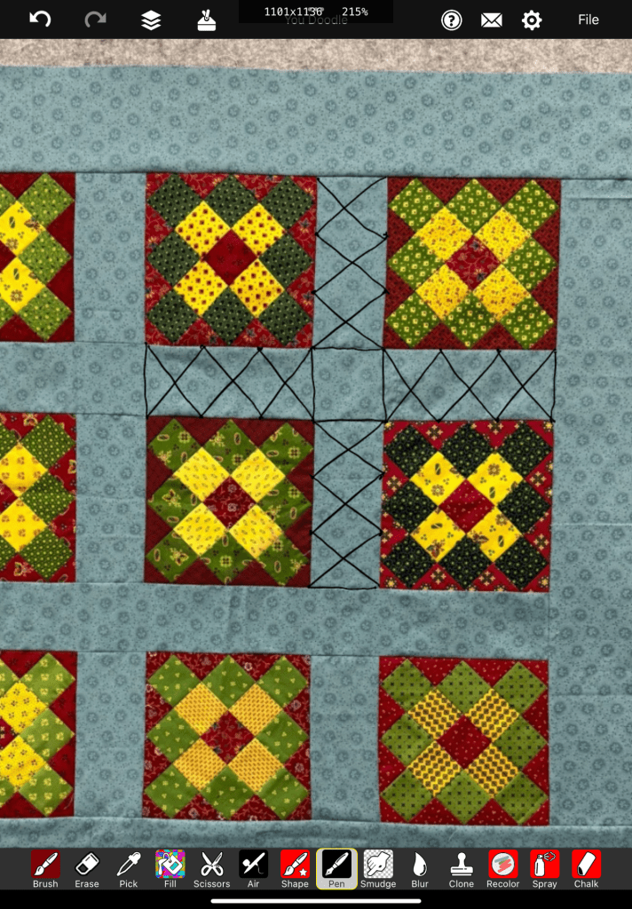 I’ve been trying to come up with a quilting plan for this little bit.