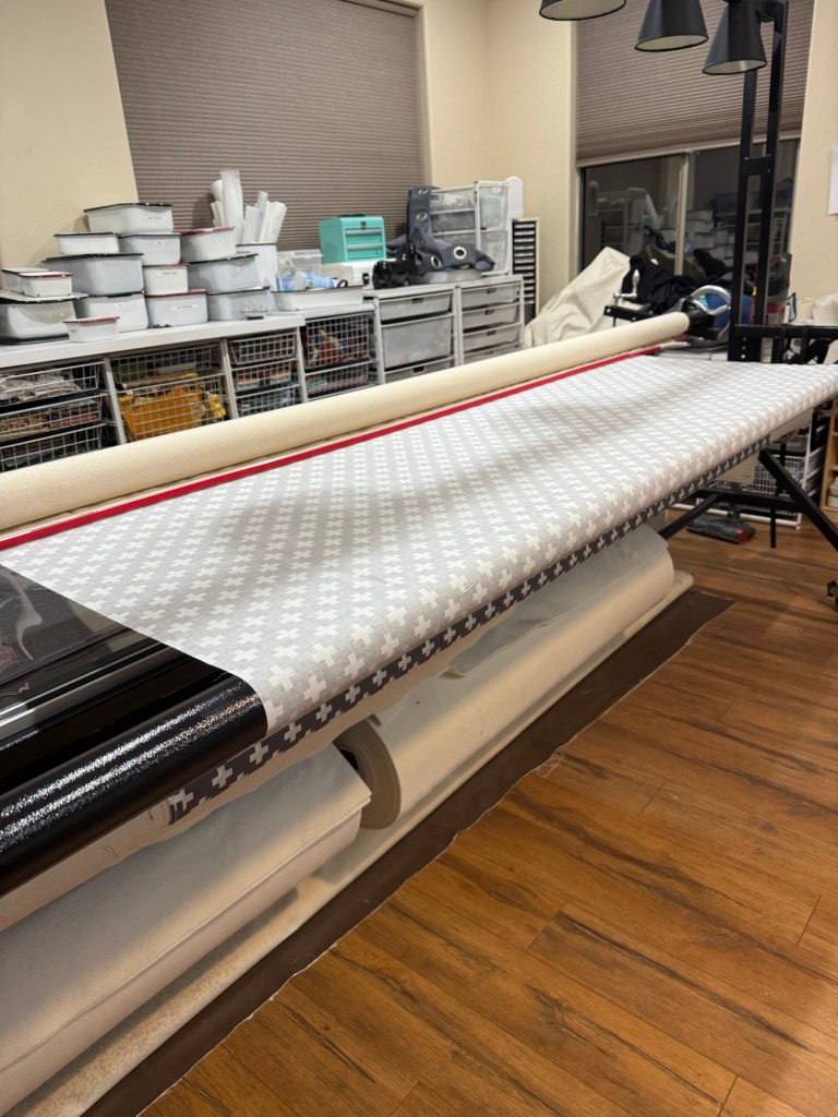 My top is finished and I’m getting ready to quilt it. This is my backing.