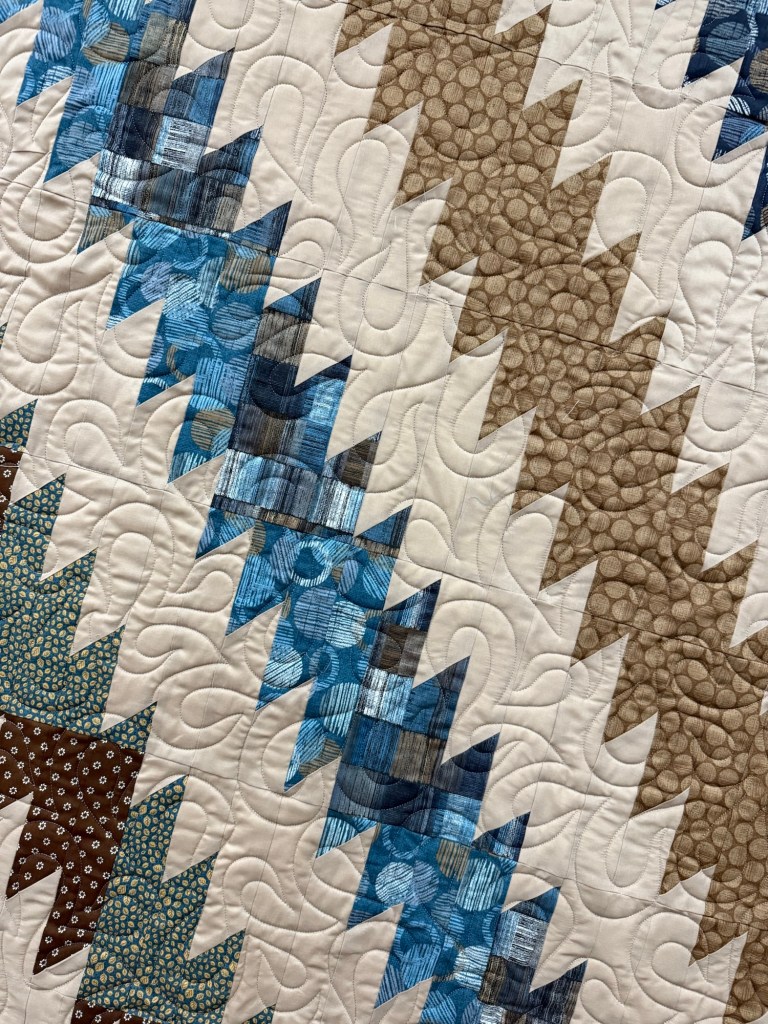 It used eight fat quarters plus two yards of background fabric.