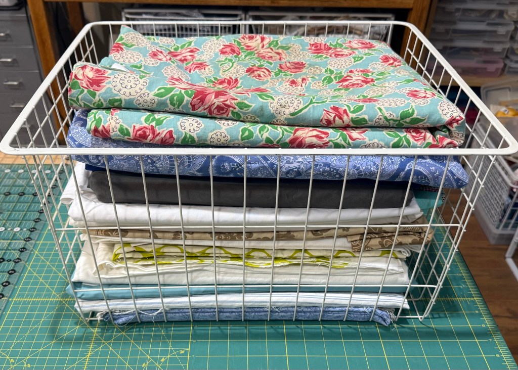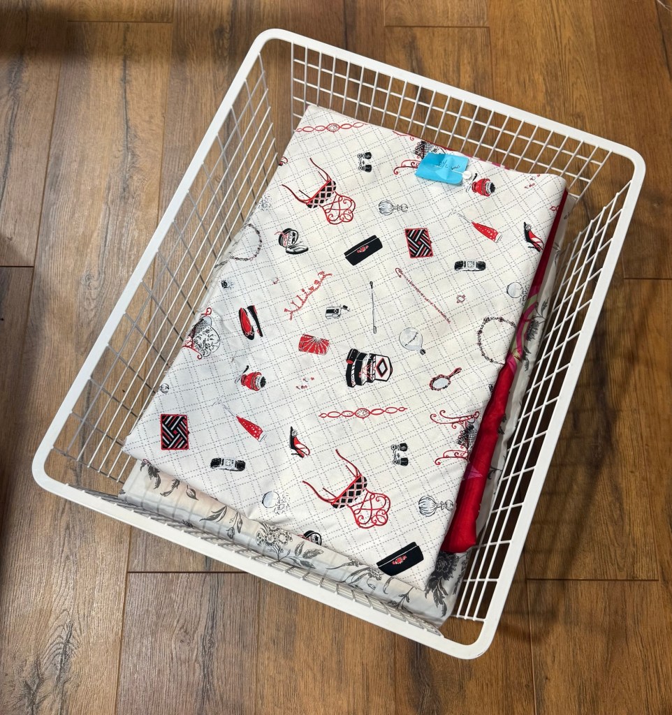 Getting started on this huge project is a real struggle. It won’t get done overnight. I started by folding and measuring pieces I have on hand for quilt backings.