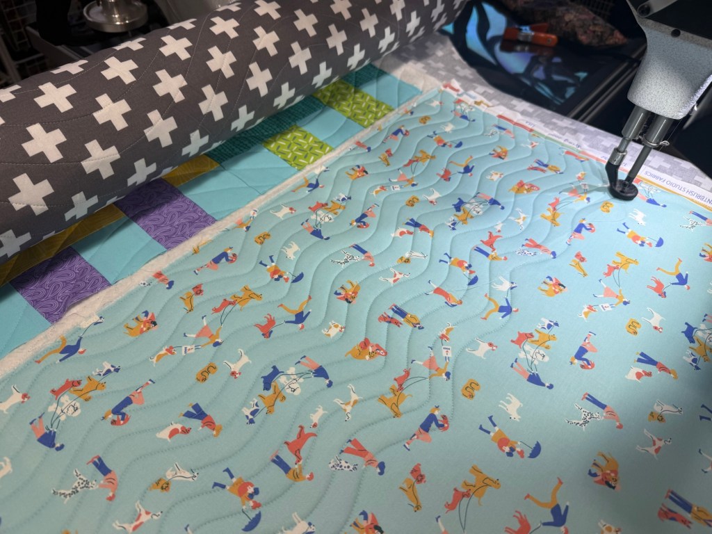 I had extra backing and batting when I quilted my Funky Weave quilt, so I quilted this fun fabric while I was at it.