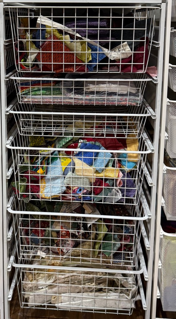 I’m far from done, but I have refolded most of my fabric and sent one big box to Goodwill. My dies are sorted.