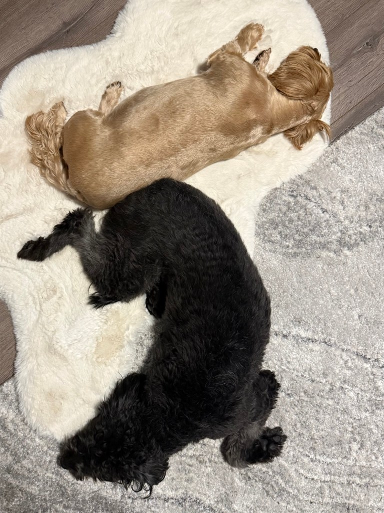 Meanwhile, these two hooligans waited on the new rugs for him to come home.