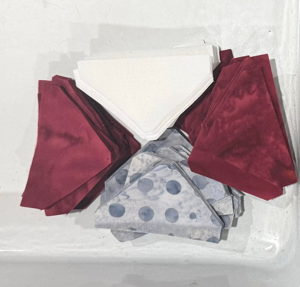My version of this quilt may be quite boring. This is my final fabric pull. Yep, just four fabrics. And I’m only making half as many blocks.