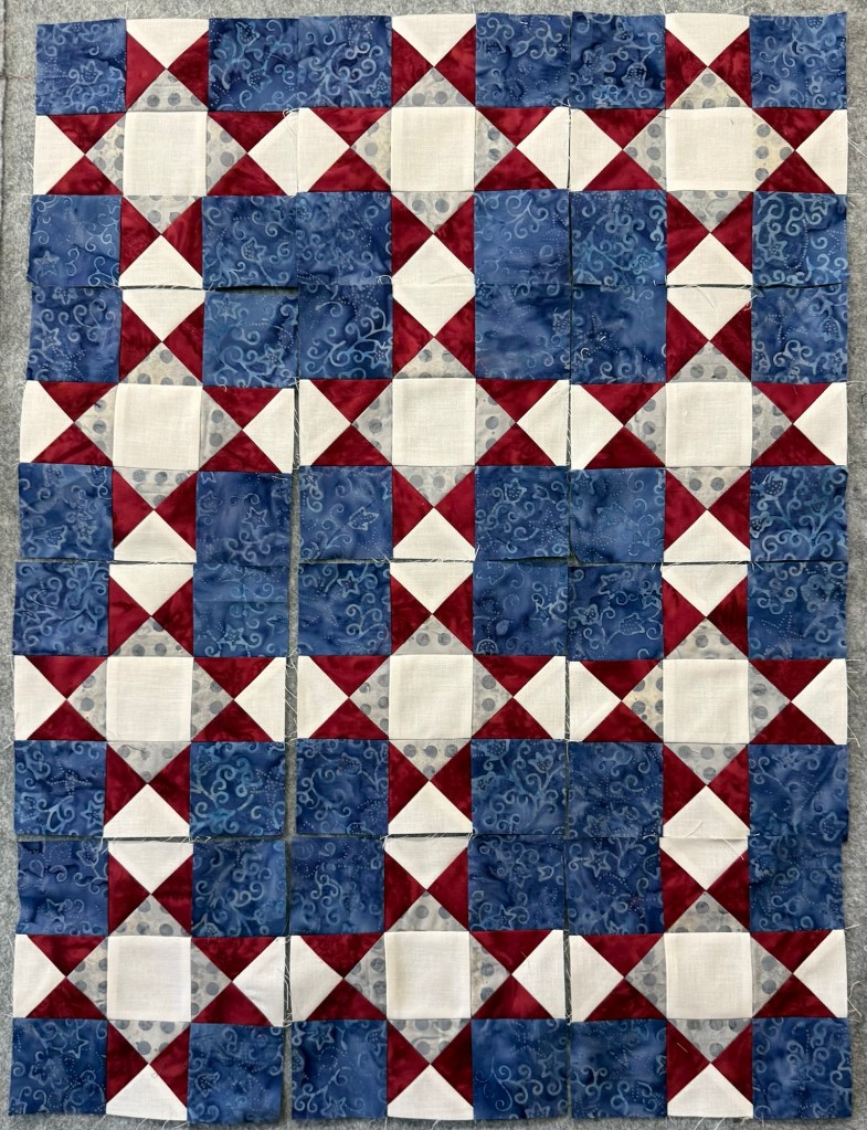 I’m behind on everything, but I’m working at getting caught up on the Quiltville Mystery quilt. Part 5 is now done.