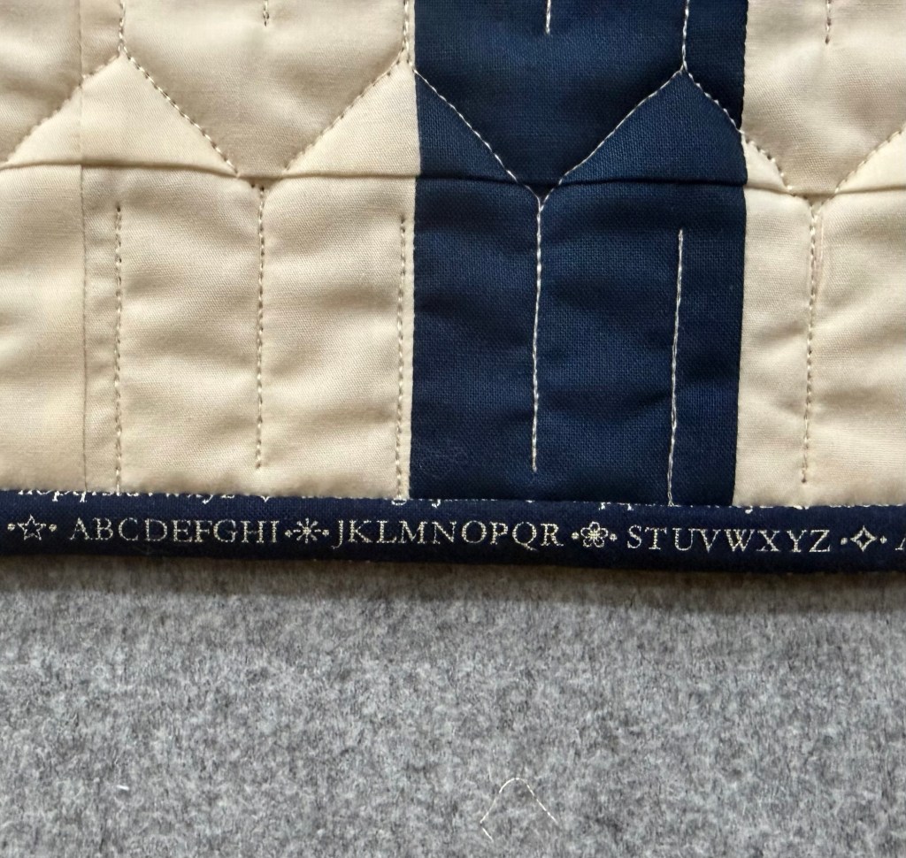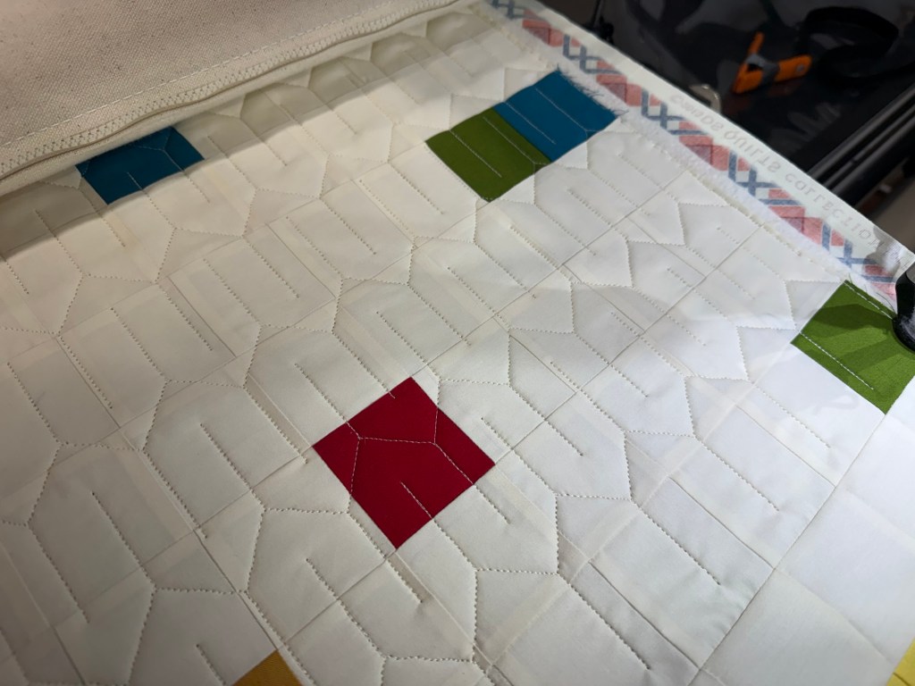 I used 50 weight Glide Thread and should have used the thinner 60 weight. What I really should have done, is gone with my gut and quilted simple horizontal lines.