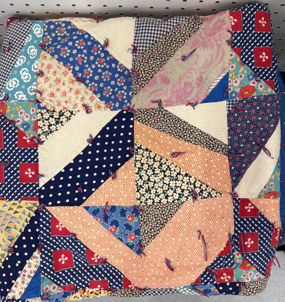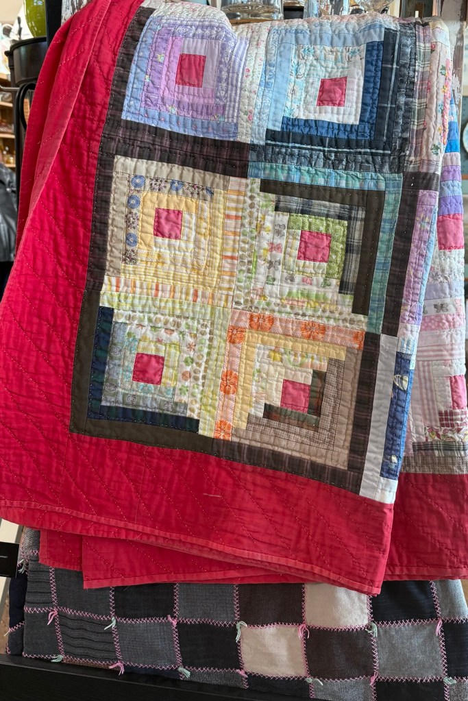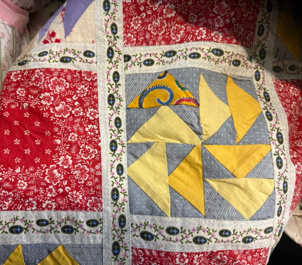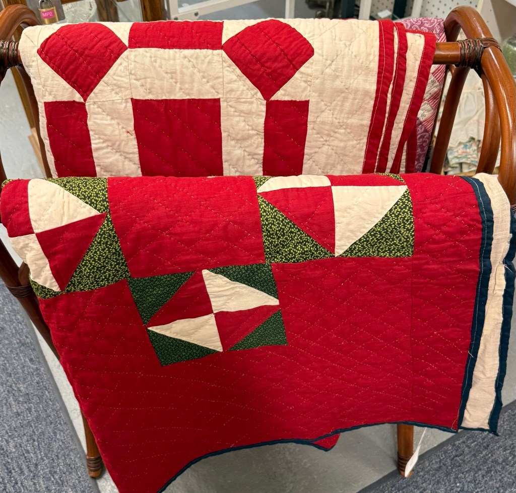 Mr. Wonderful and I just returned from a quick trip to Michigan. We hit up some antique stores while we were there. I saw some fun quilts and thought I’d share them.