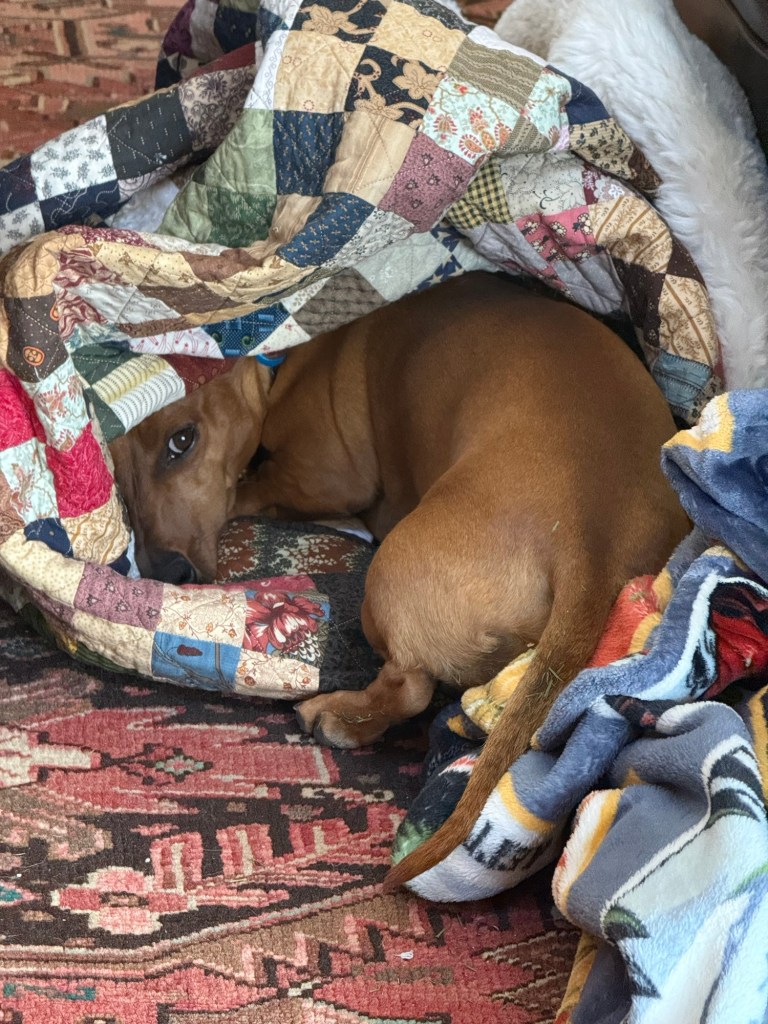 Grand dog Charlie loves quilts.