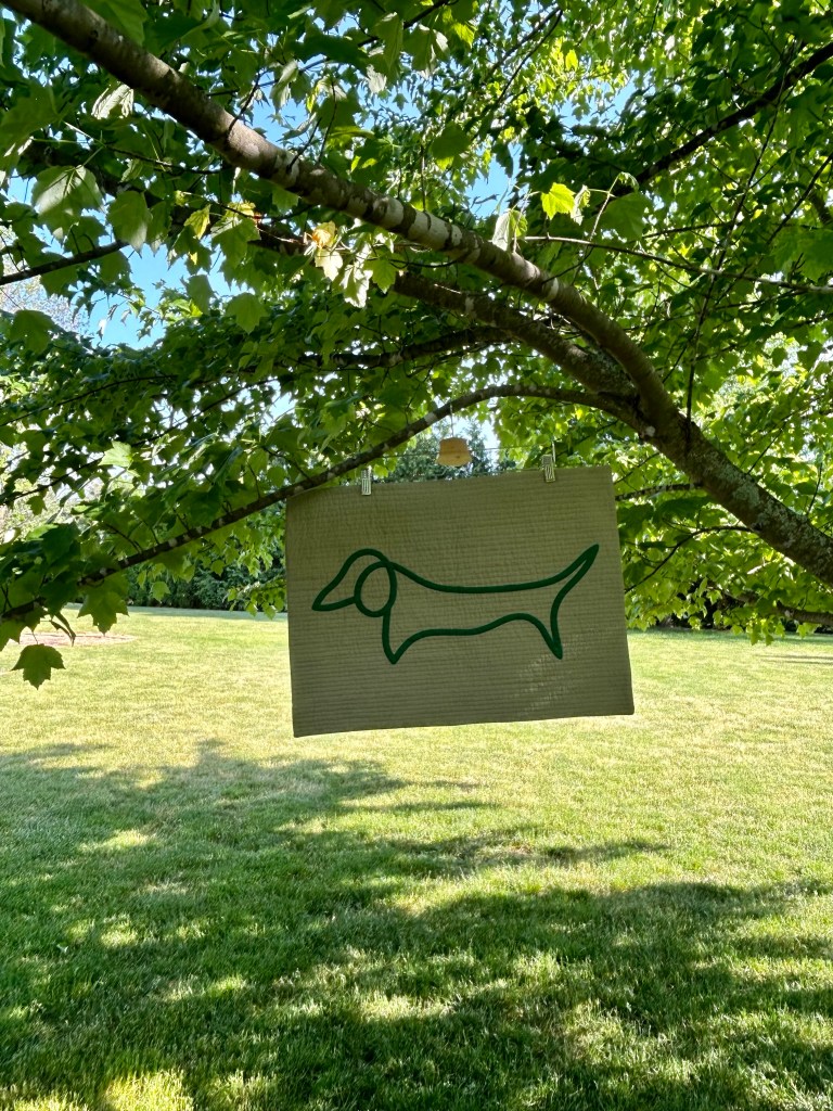 Happy Sunday! I’m still playing with bias tape. Here is my latest idea. Yes, it’s a riff on Picasso’s dachshund. It needs a bit of finessing before I start glue basting.