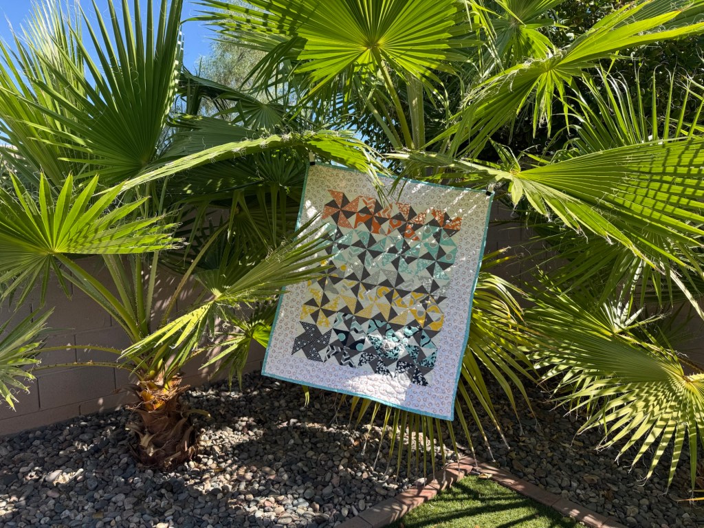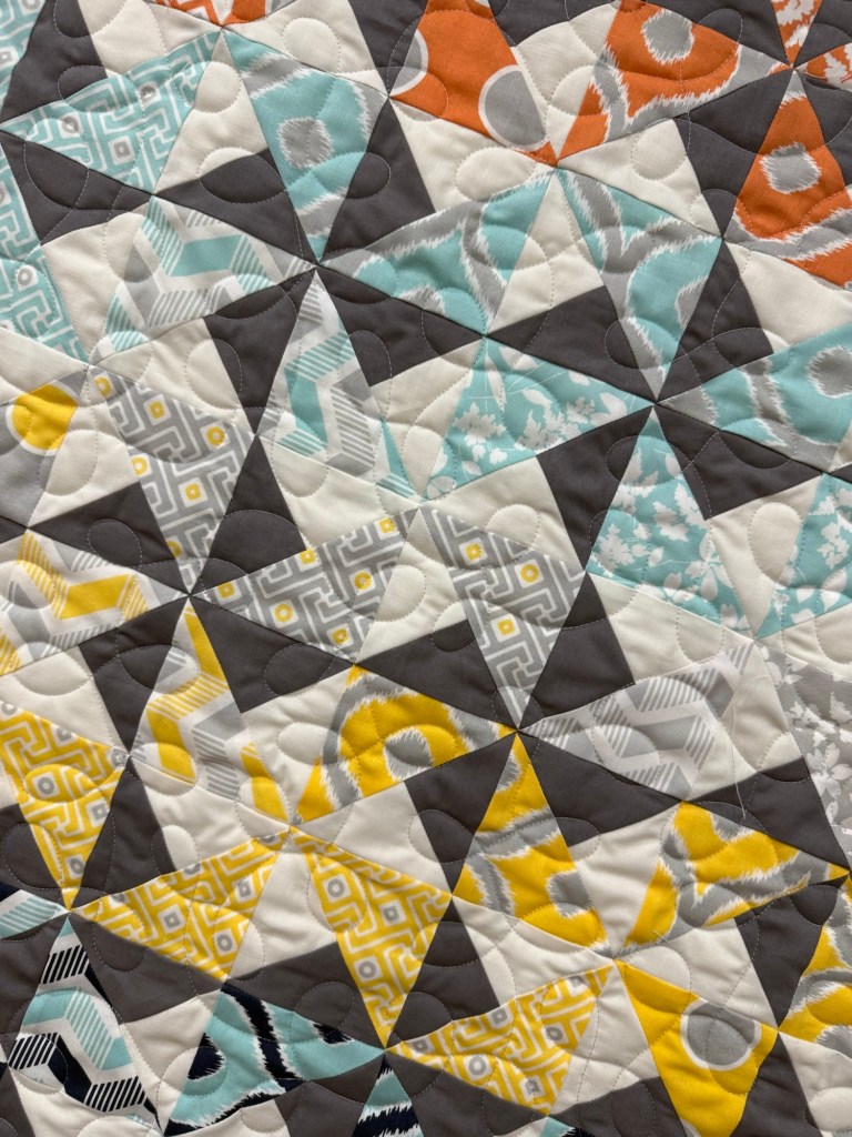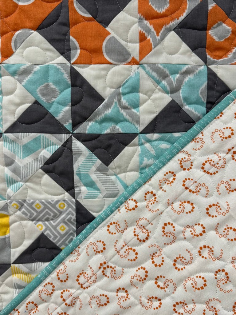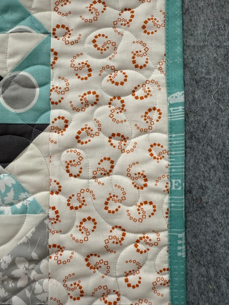 The binding was a bit of an unconventional choice, but it works. I wanted the binding to frame the quilt, but not scream, look at me!