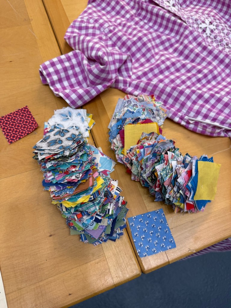 I decided I needed a very small project that I could actually finish. So I got out these two bins of vintage fabrics. I really love my AccuQuilt dies and cutters for this!