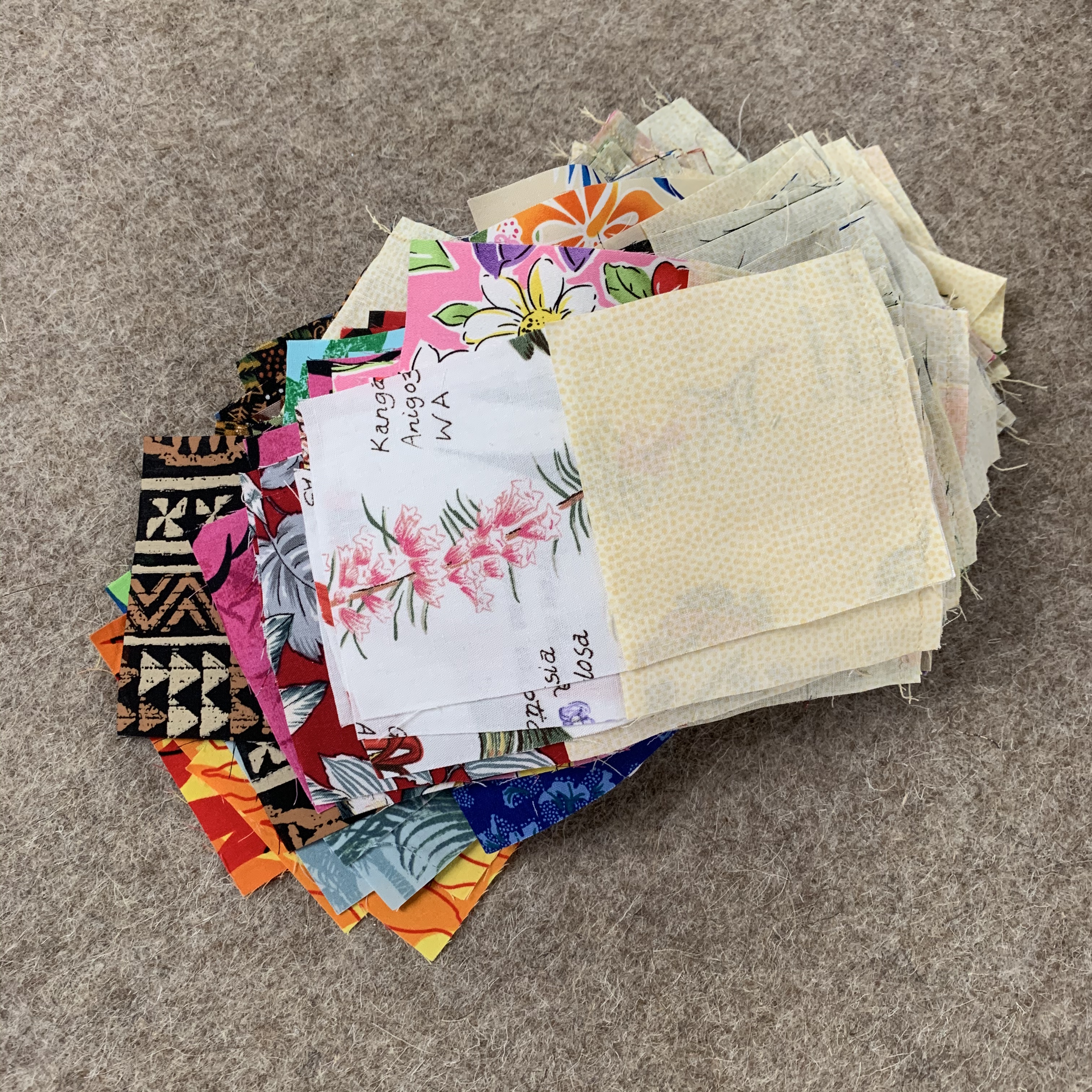 Good. Now I’m going to start discussing in cut sizes. I can get 12 3 1/2 inch squares from one 3 1/2 inch strip of fabric cut selvedge to selvedge.