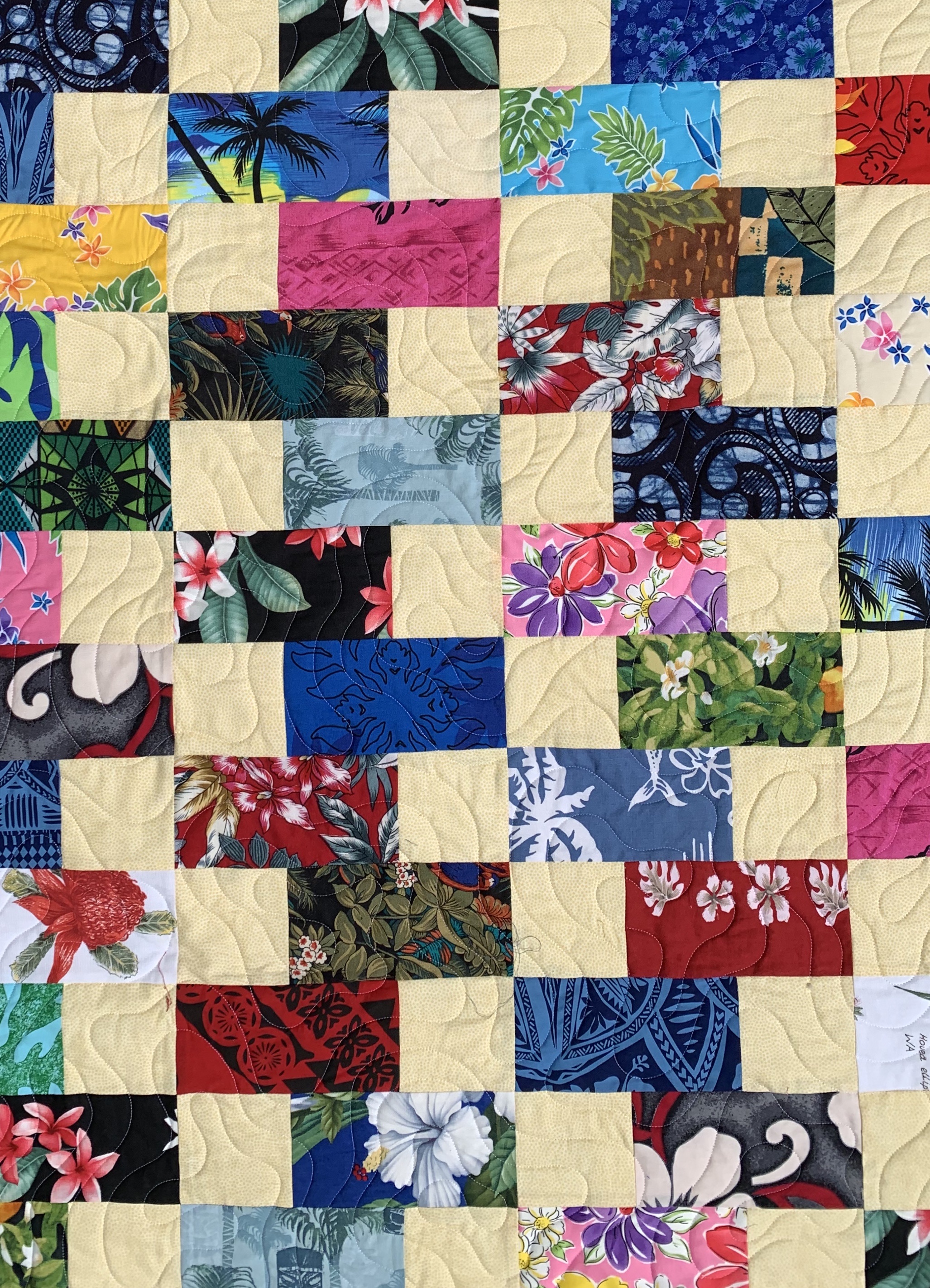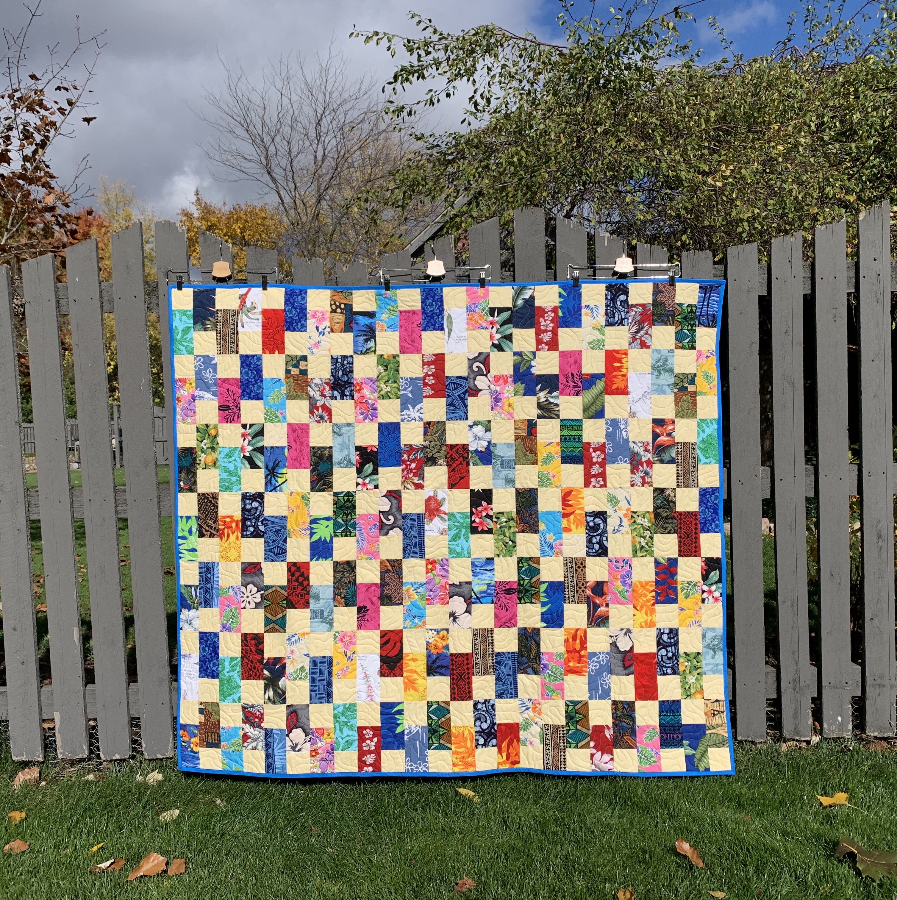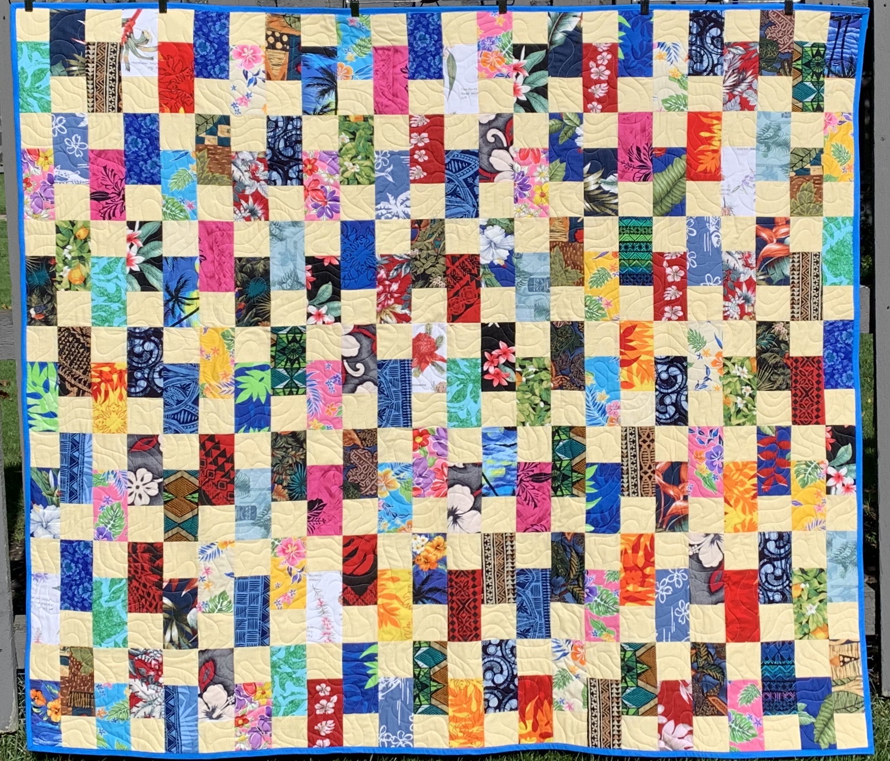 I wanted my quilt to be approximately 60 by 72 inches. I find that to be a good nap quilt size. My blocks are 9 inches wide. So 60 divided by 9 is 6.667. I round up to 7 blocks wide which is 63 inches. A little big, but close enough.