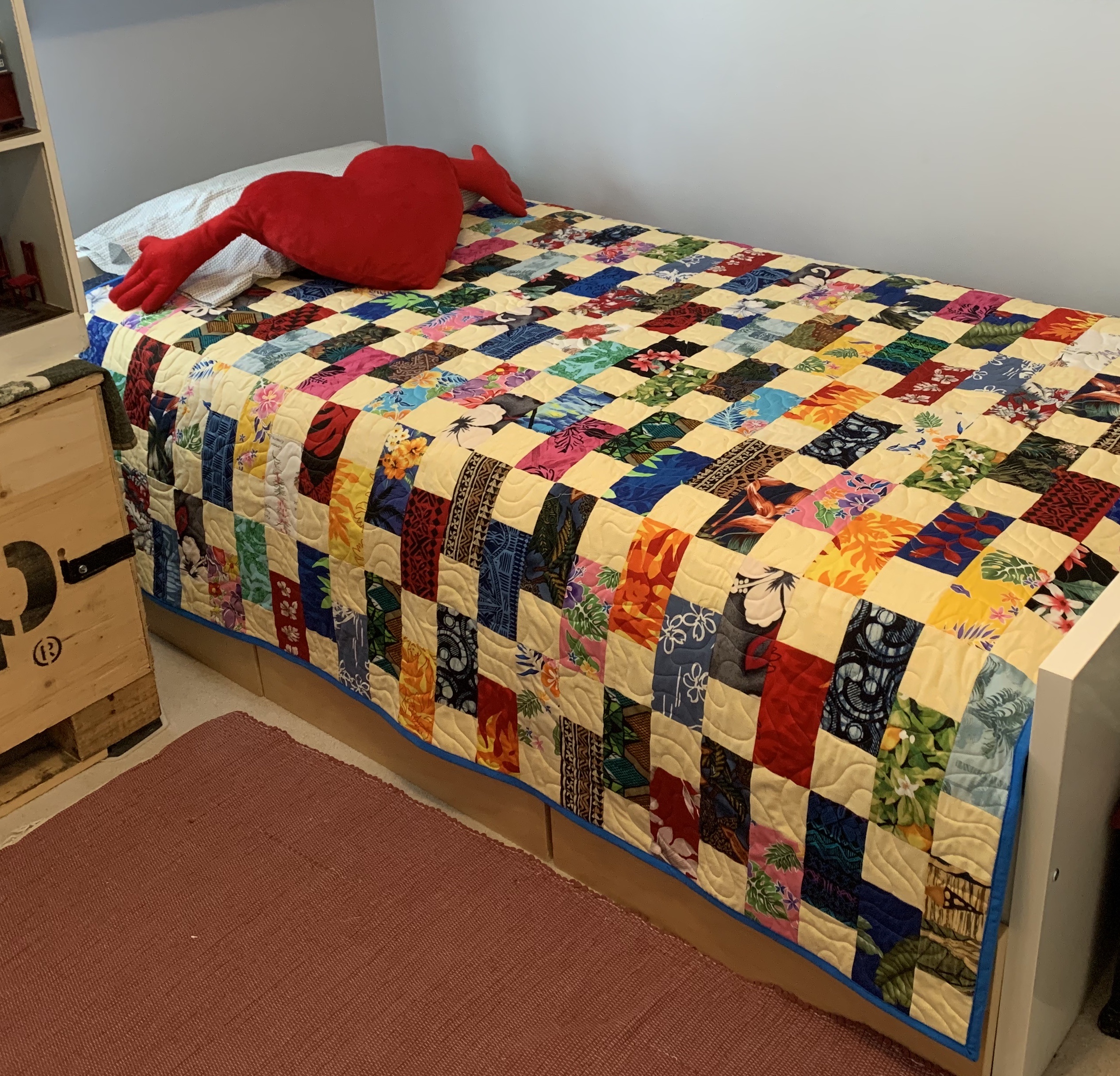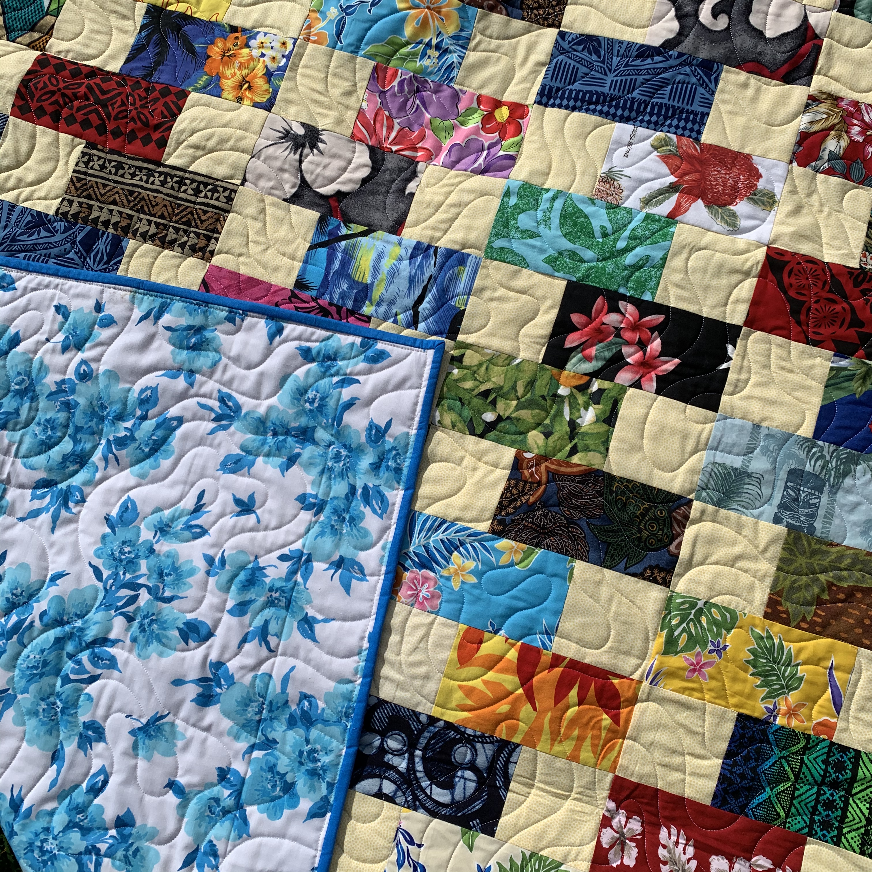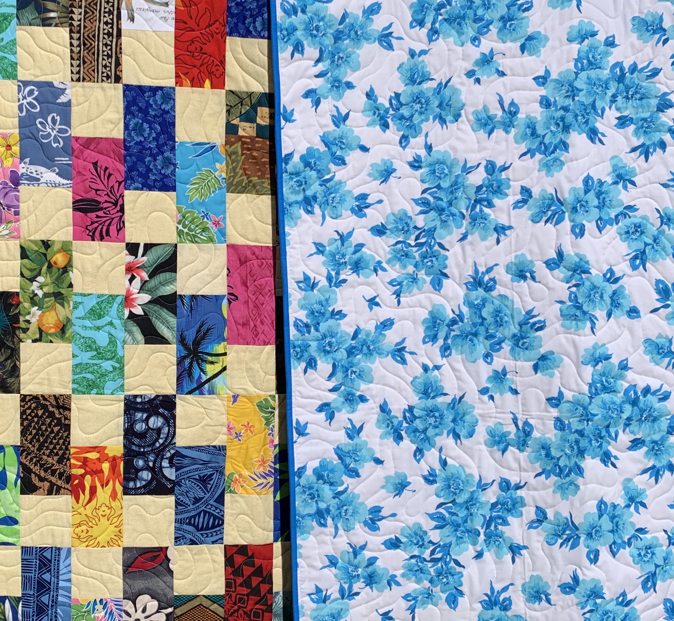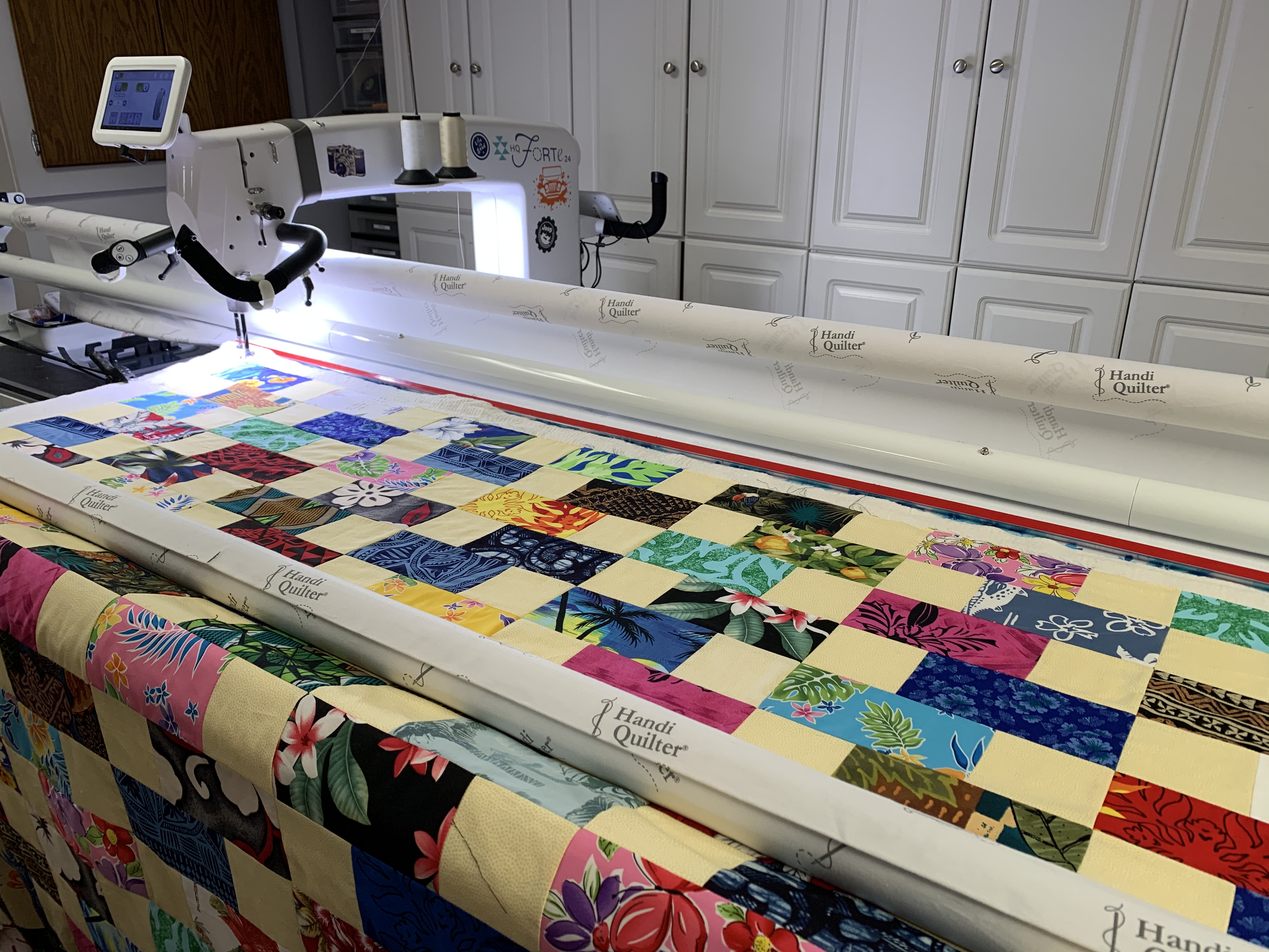 I wanted my quilt to be approximately 60 by 72 inches. I find that to be a good nap quilt size. My blocks are 9 inches wide. So 60 divided by 9 is 6.667. I round up to 7 blocks wide which is 63 inches. A little big, but close enough.