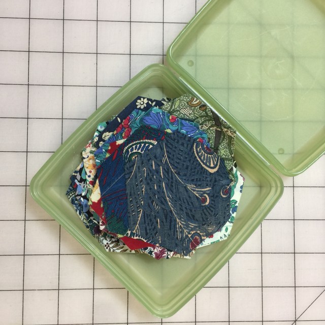 3. I cut these hexies out of my tiny, precious stash of Liberty of London fabrics. I should do something with them. No progress.