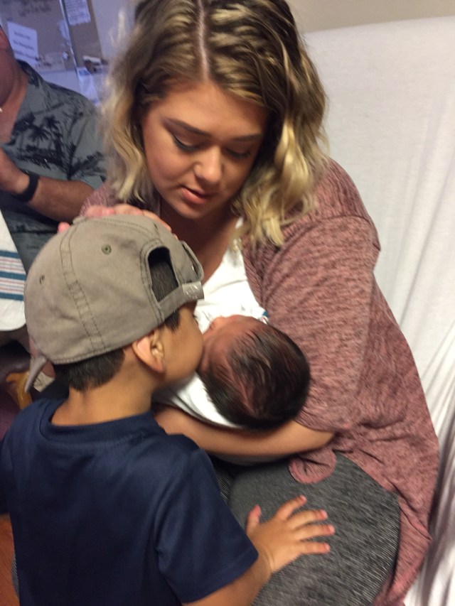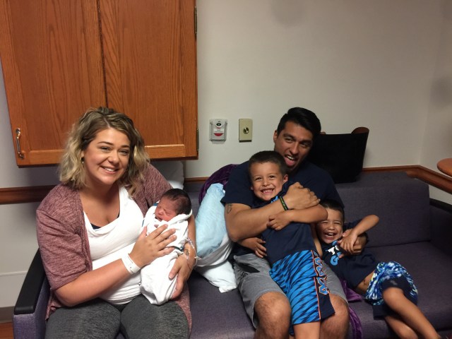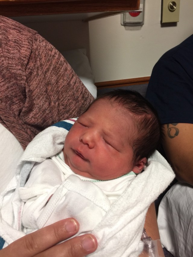 He looks very much like his mommy did when she was born. He weighed in at 9 pounds and 3 ounces and was 21.5 inches long.