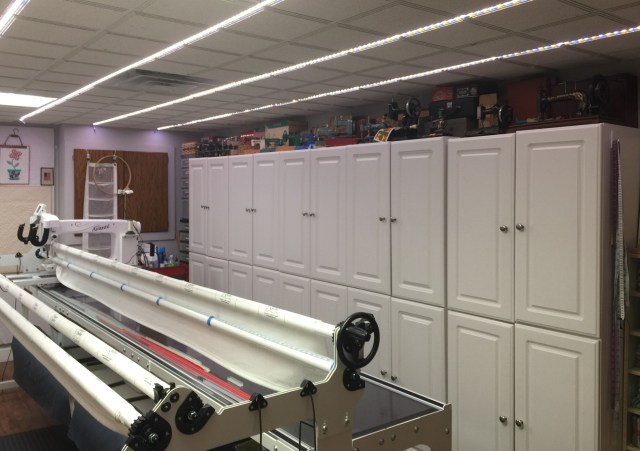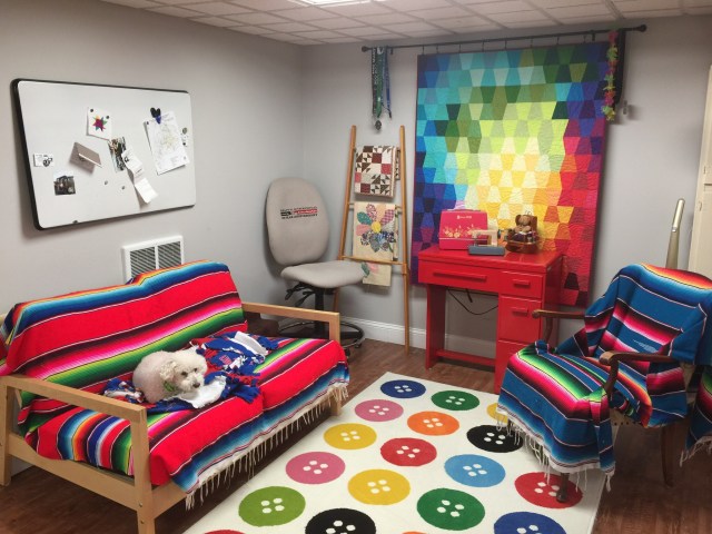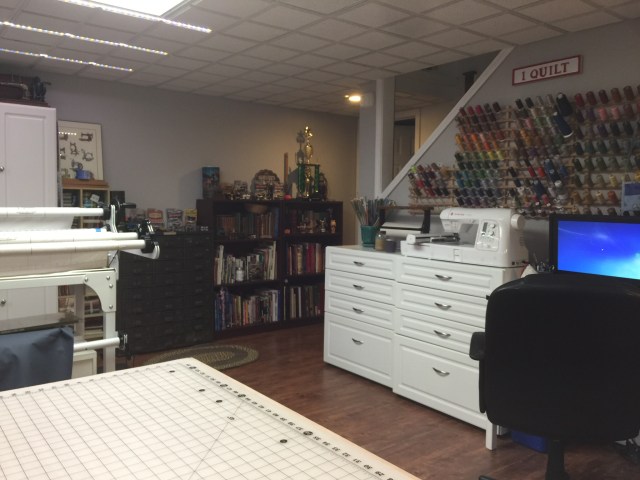I enjoy making modern quilts, art quilts, traditional quilts and everything in between. Most of the time I machine piece and machine quilt. My long arm quilting machine is one of the very best investments I’ve ever made!