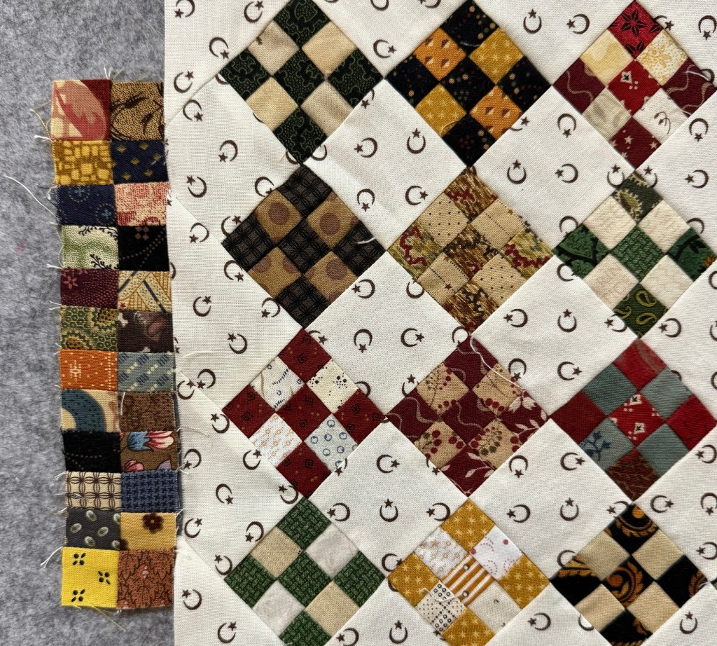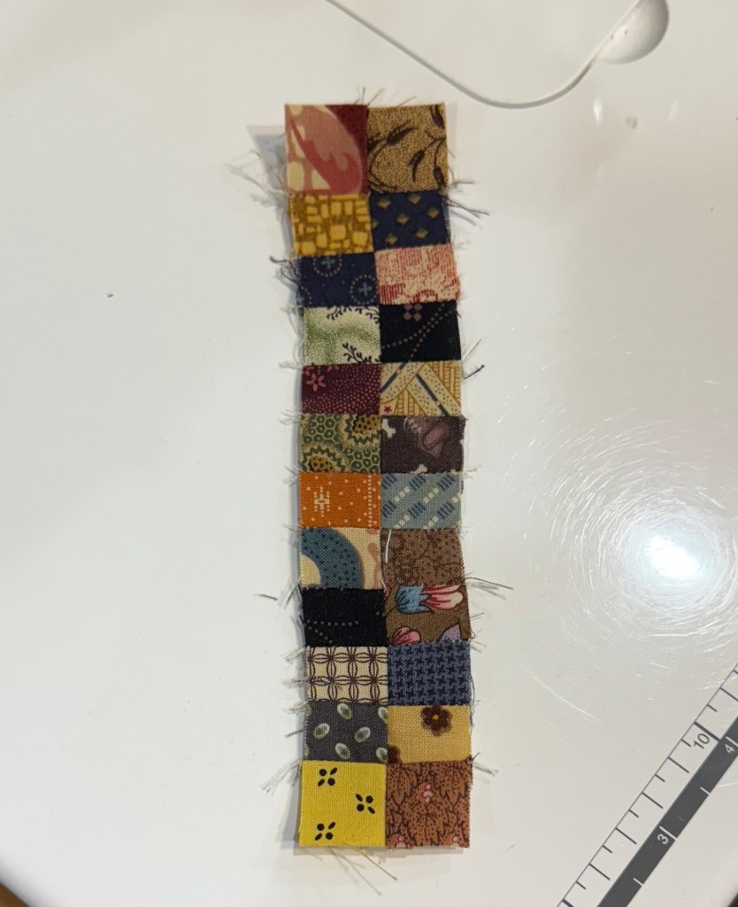 I also cut 1 1/2 inch squares. Now I’m ready to sit and piece.