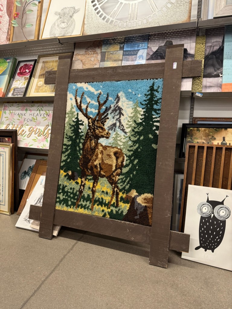 Speaking of gigantic, this framed latch hook picture must have taken ages! I saw it at Goodwill. It was nearly as tall as me! I have to admire that commitment.